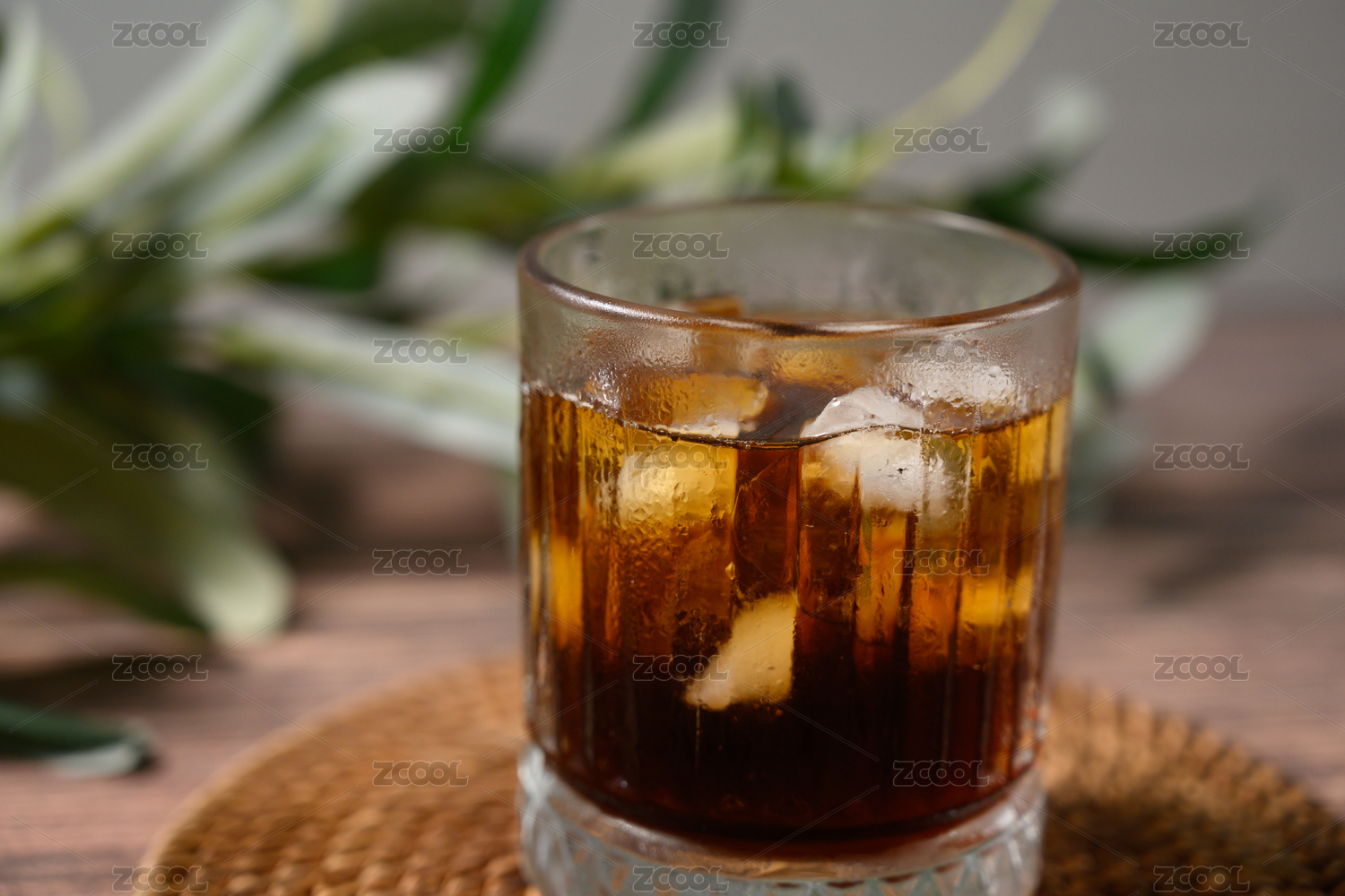 桌面上的杯子里的甘甜可口的冰红茶