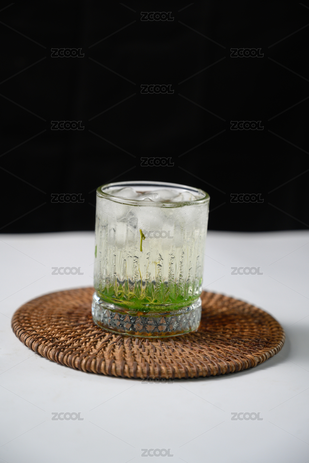 桌面上的杯子里的甘甜可口的冰茉莉花茶