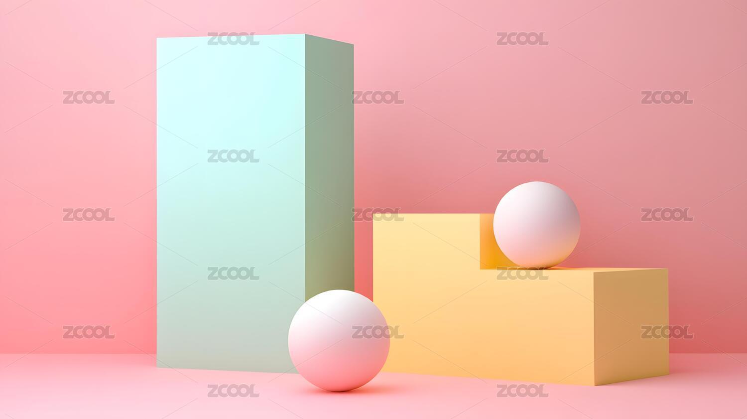 几何形状与柔和色彩的抽象场景