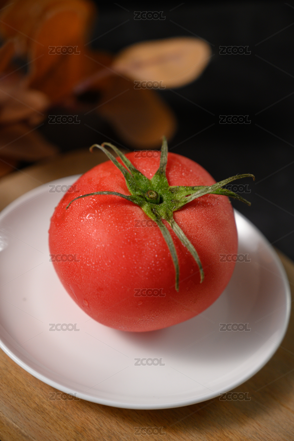 桌面上的盘子里的美味可口的新鲜西红柿