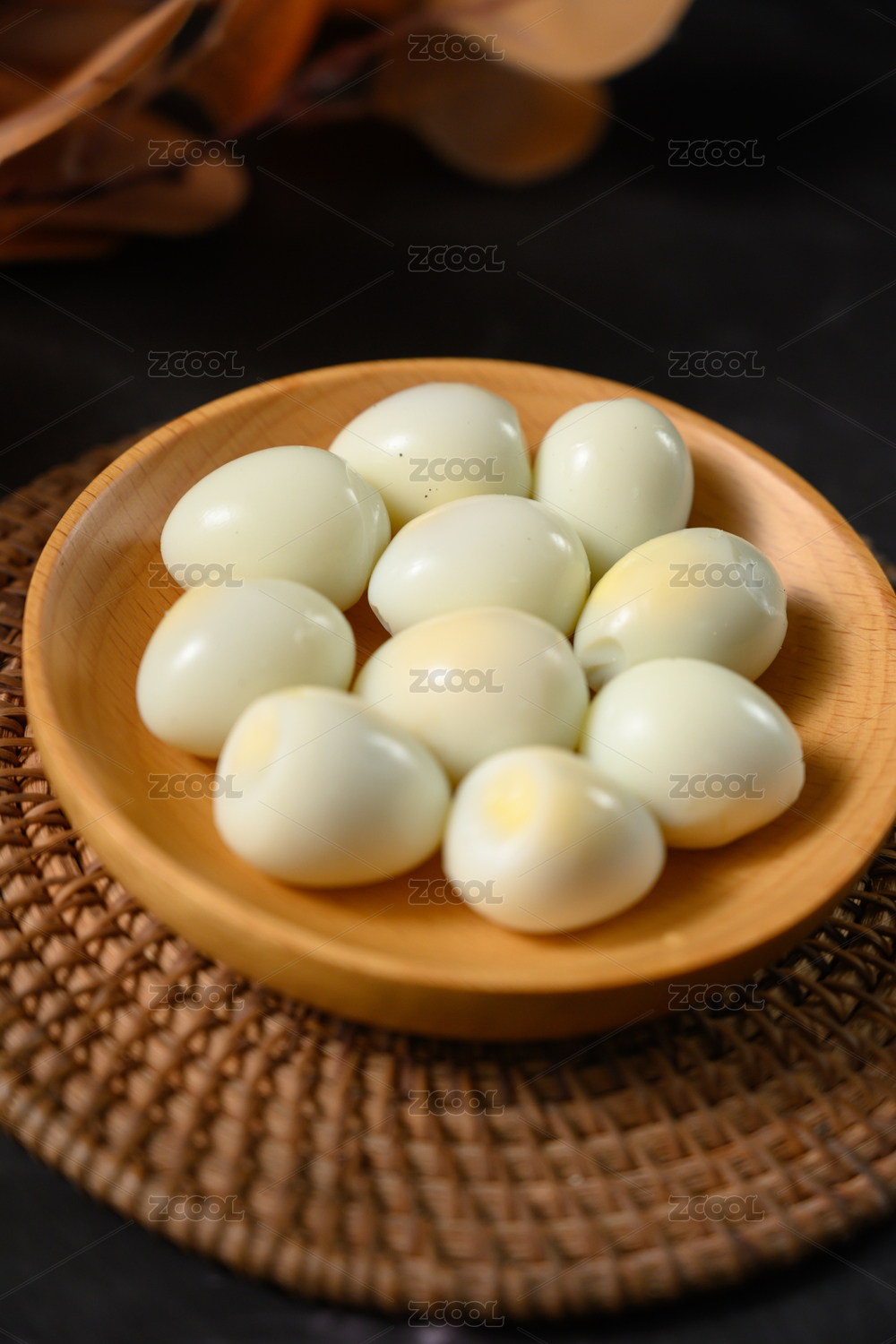 桌面上的盘子里的美味可口的水煮鹌鹑蛋