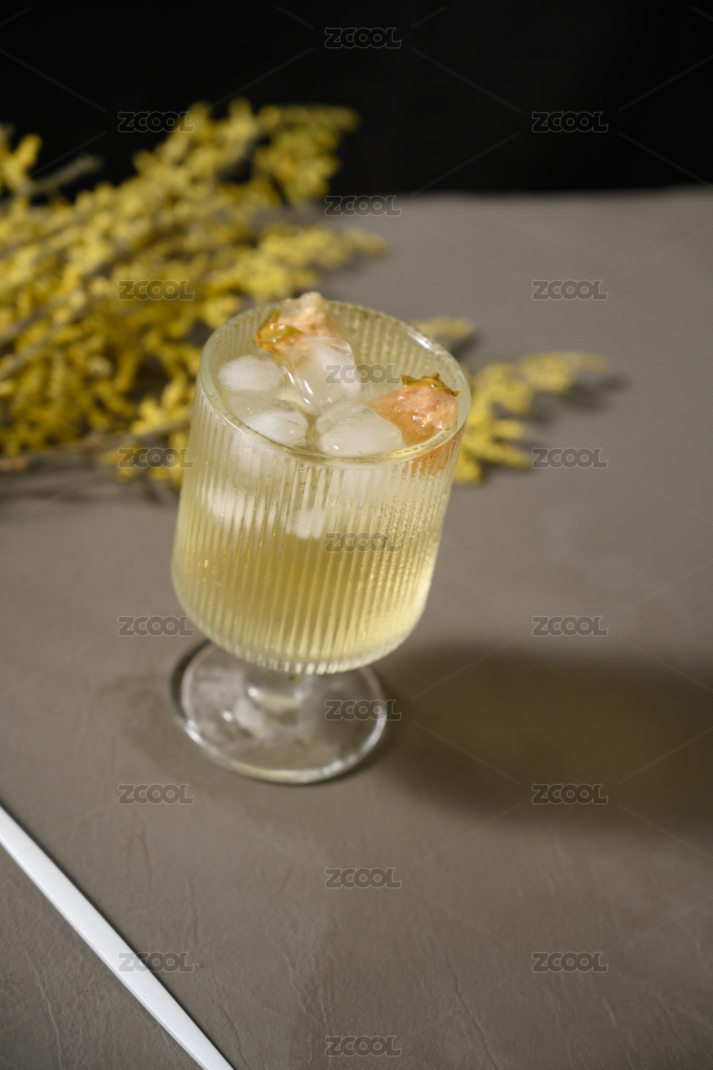 桌面上的杯子里的甘甜的西柚苏打水