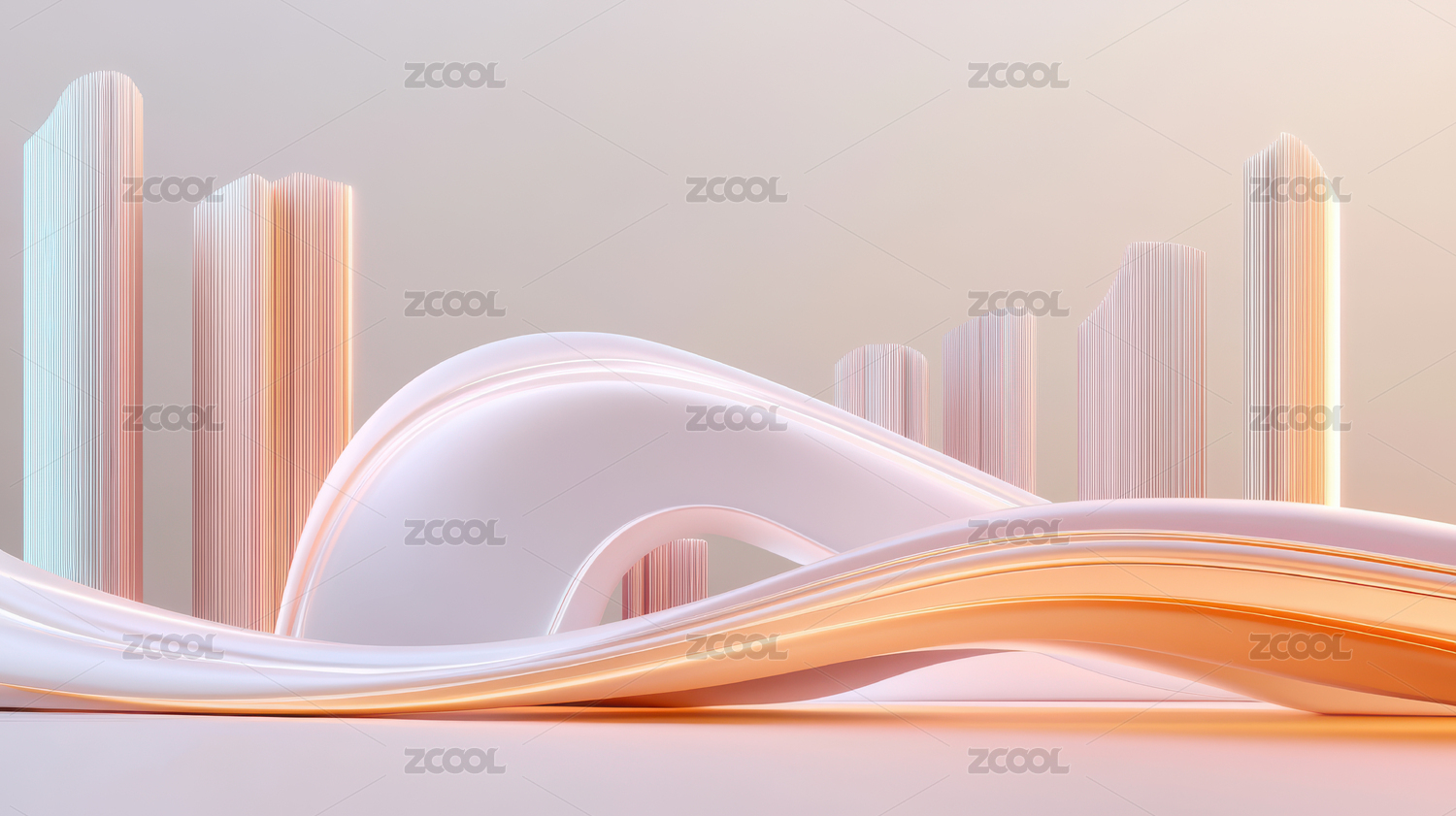 现代城市与波浪线条的抽象背景