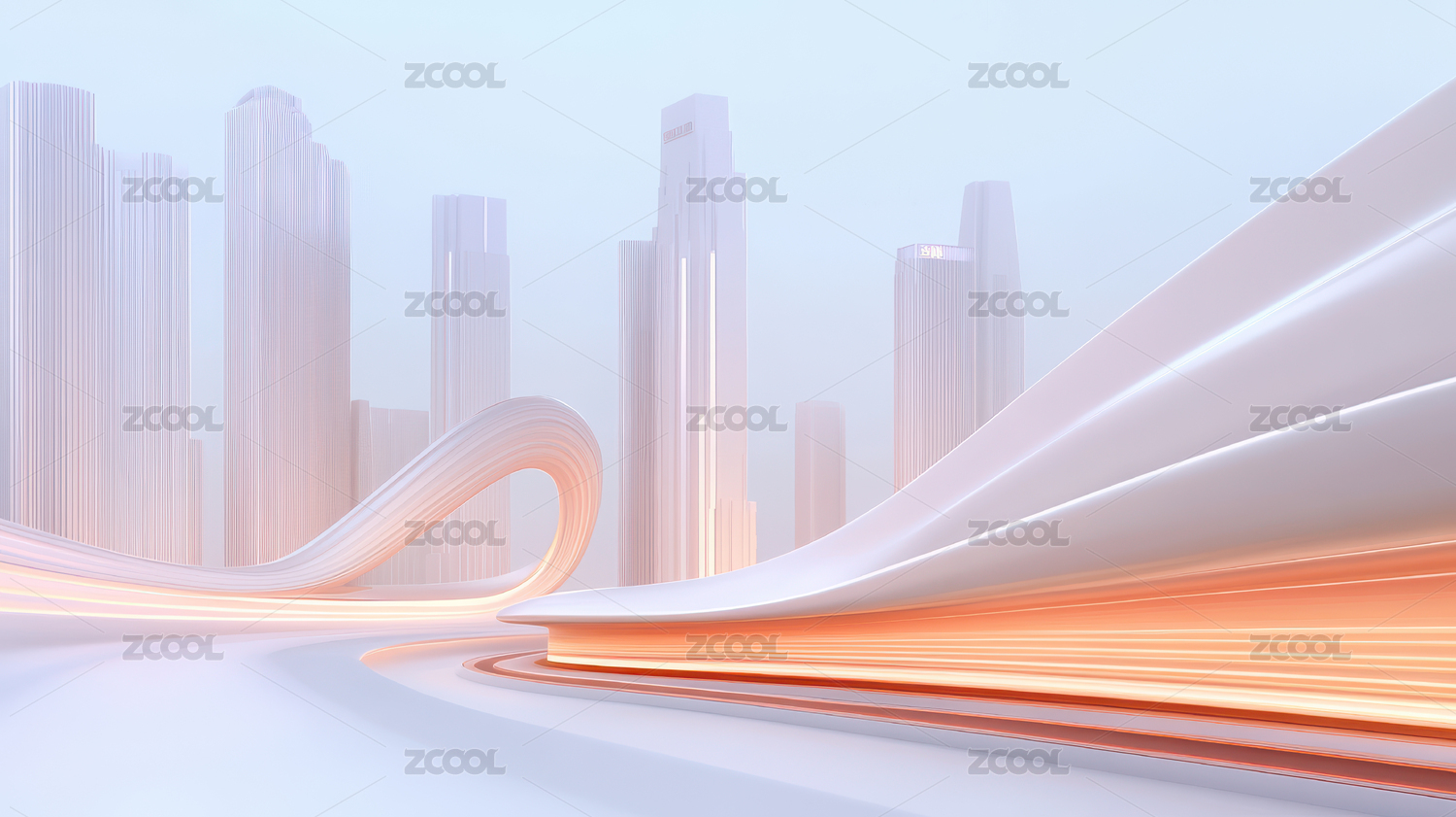 未来城市中的抽象曲线建筑