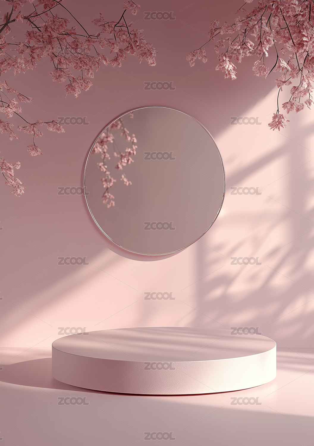 粉色圆台展示背景