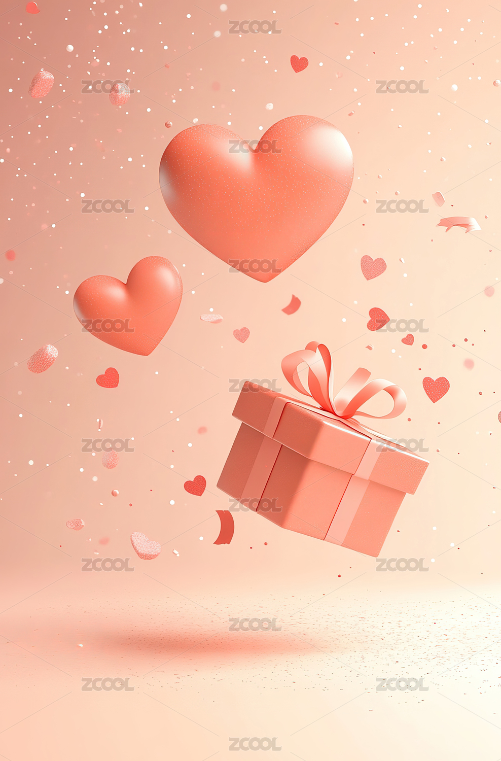 情人节礼物盒与心形