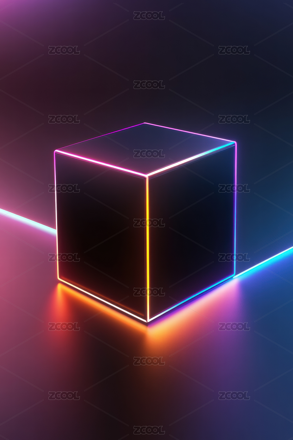 霓虹光影中的几何立方体