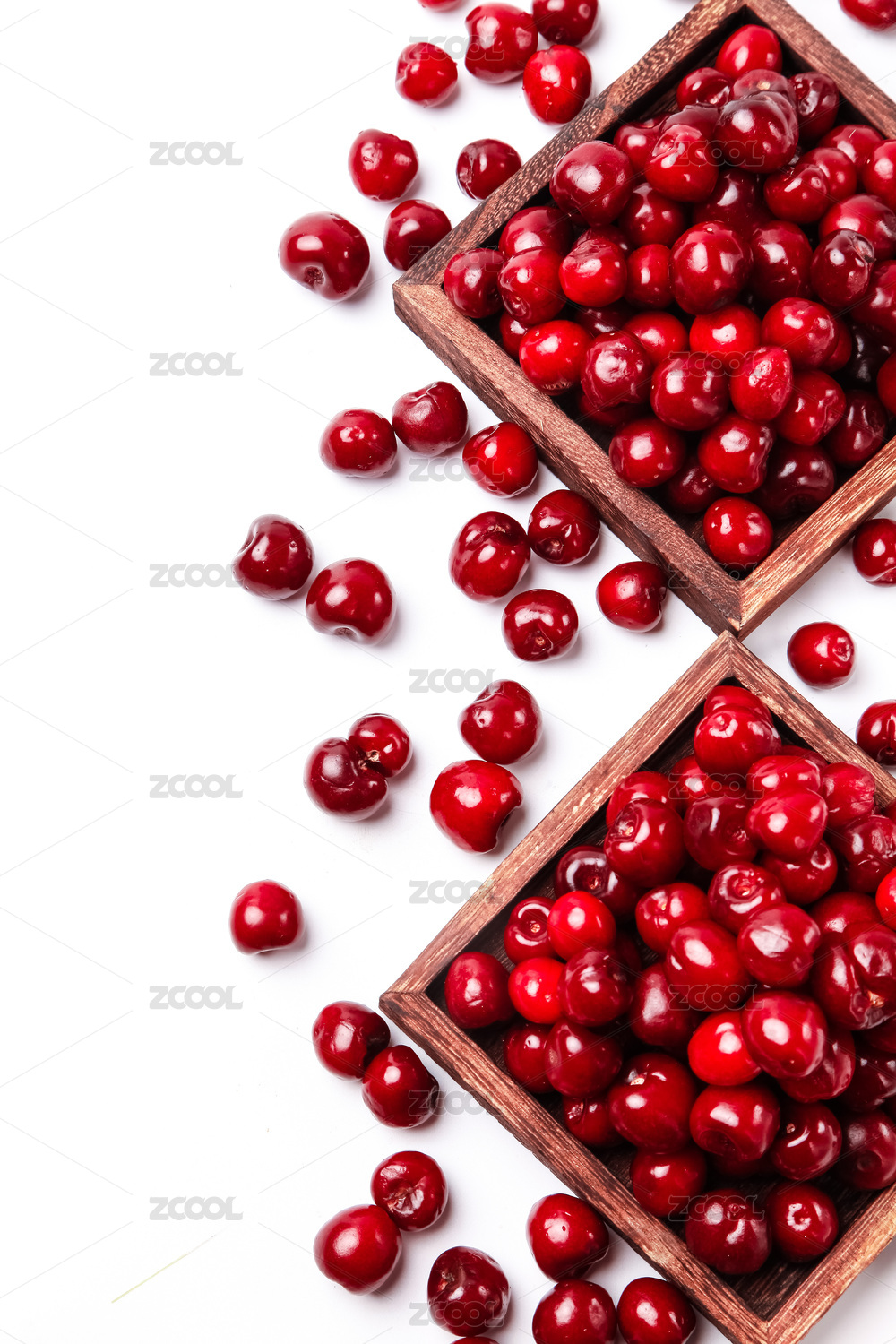 木制容器里放着的烟台樱桃