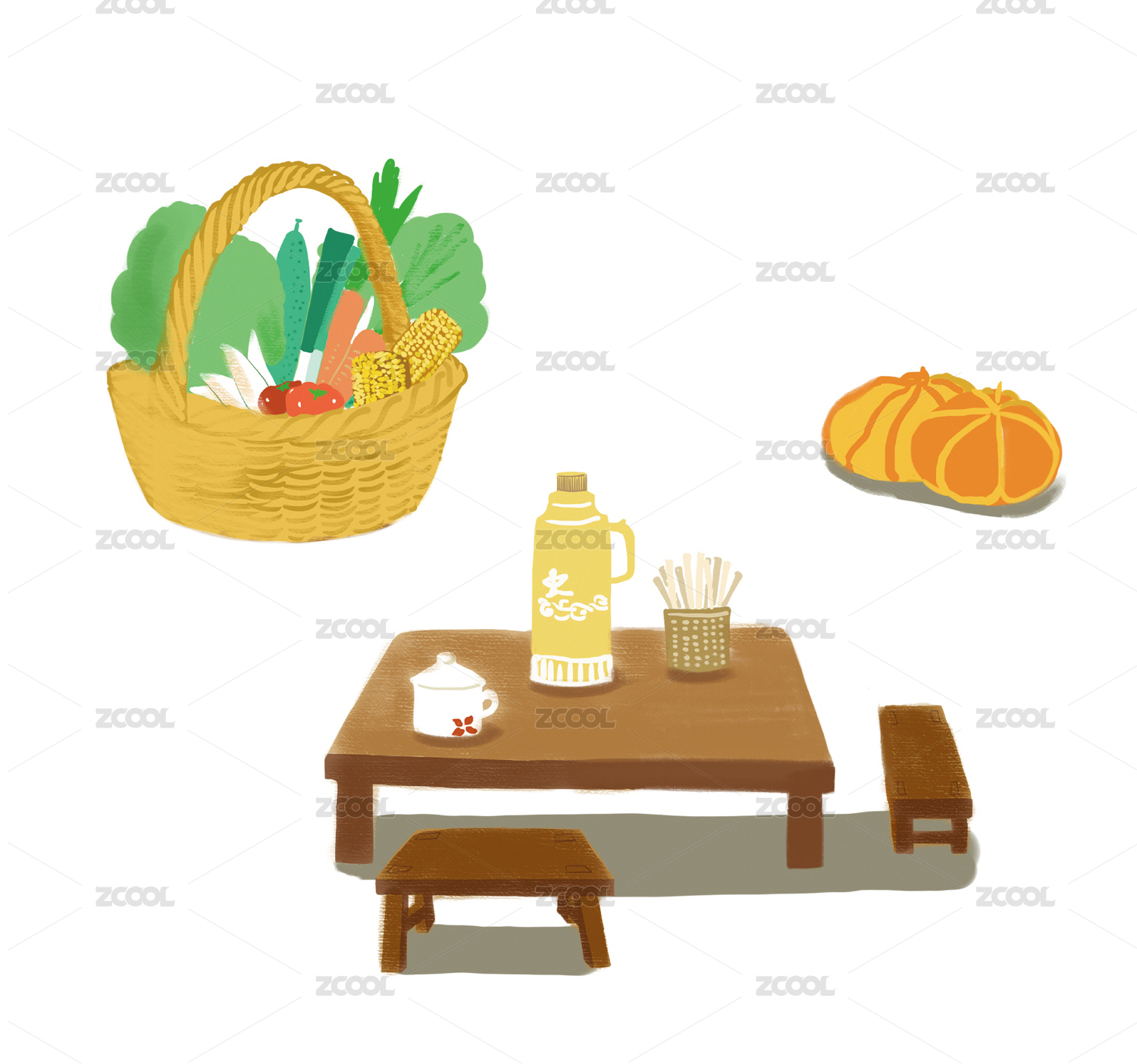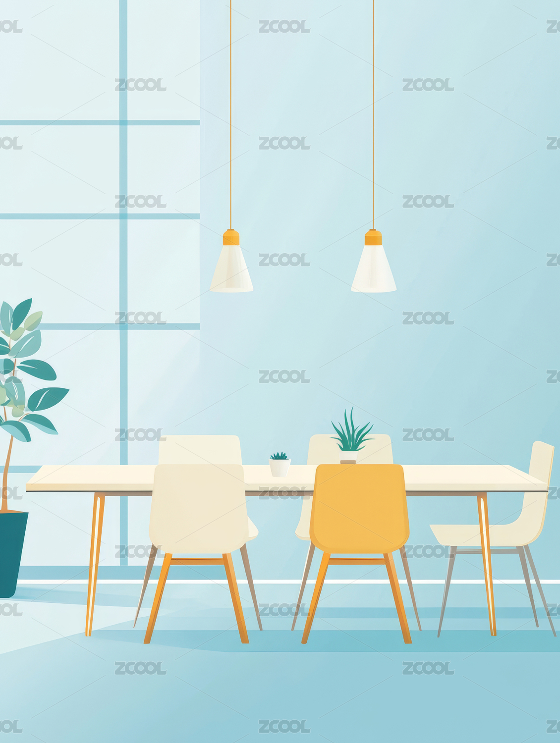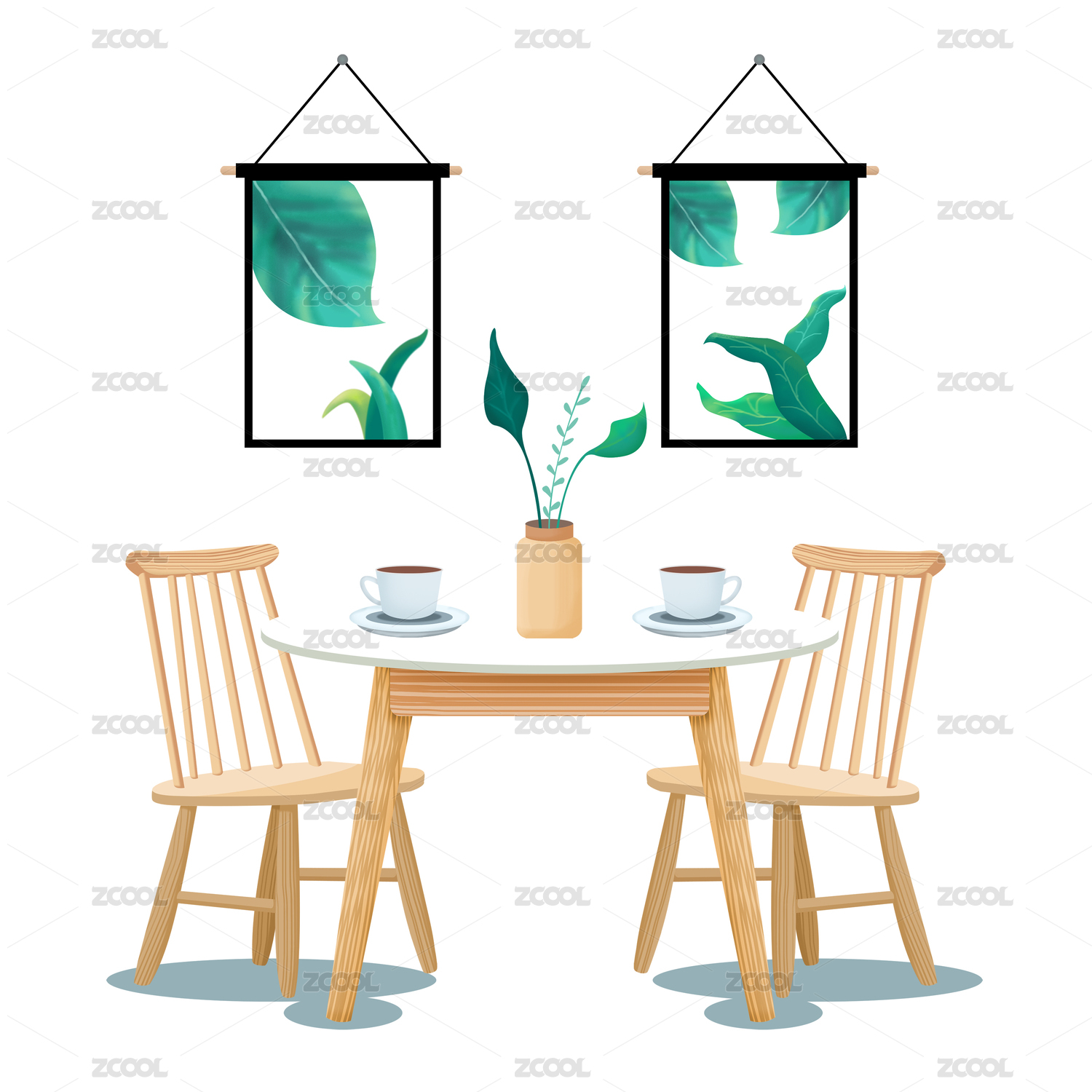 卡通手绘简约装饰餐厅餐桌餐椅插画