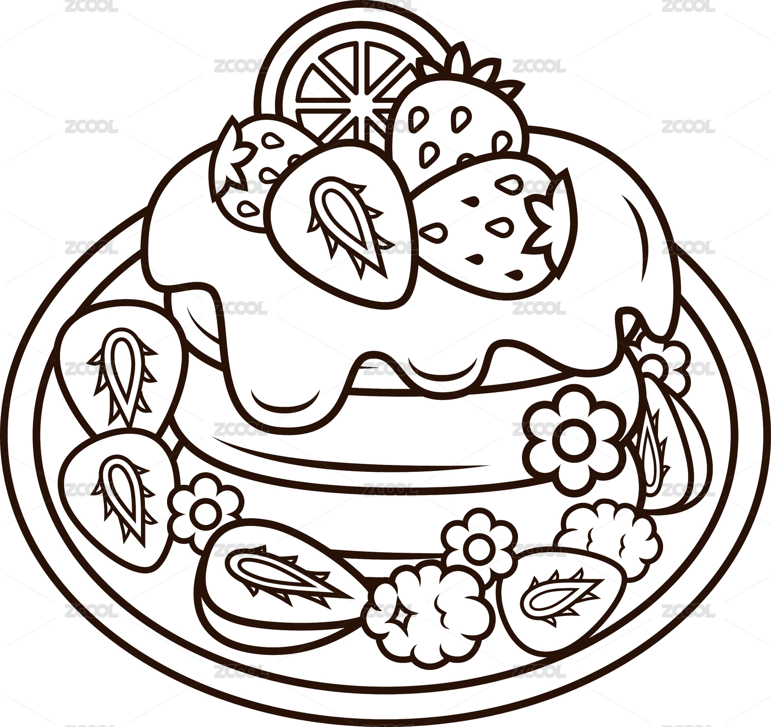 美食食物草莓奶油蛋糕甜品甜点线稿矢量插画