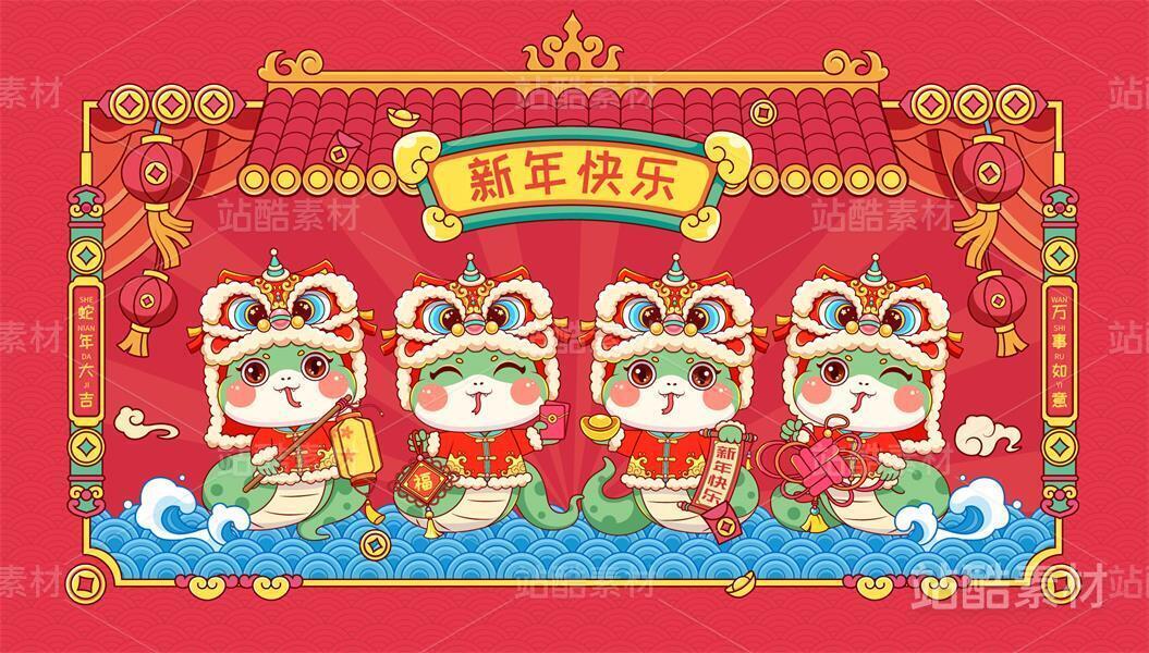 蛇年,蛇,卡通,新年,春节,年俗,传统节日,可爱,喜庆,红色