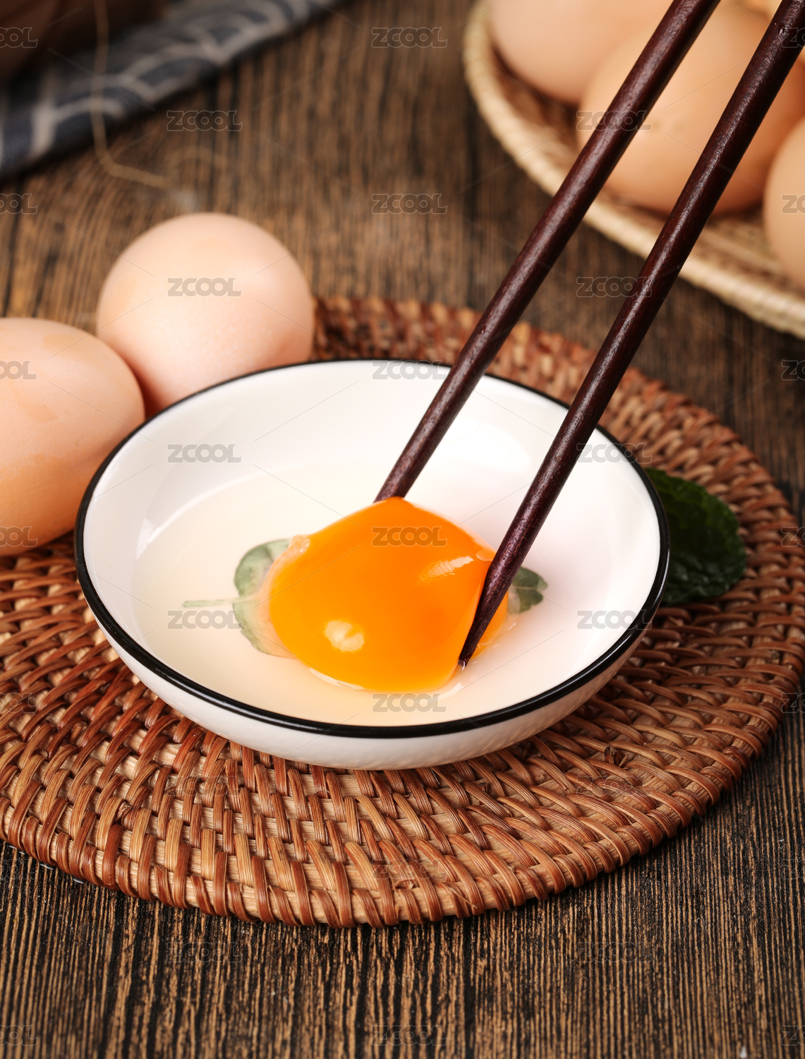 筷子夹着鸡蛋黄