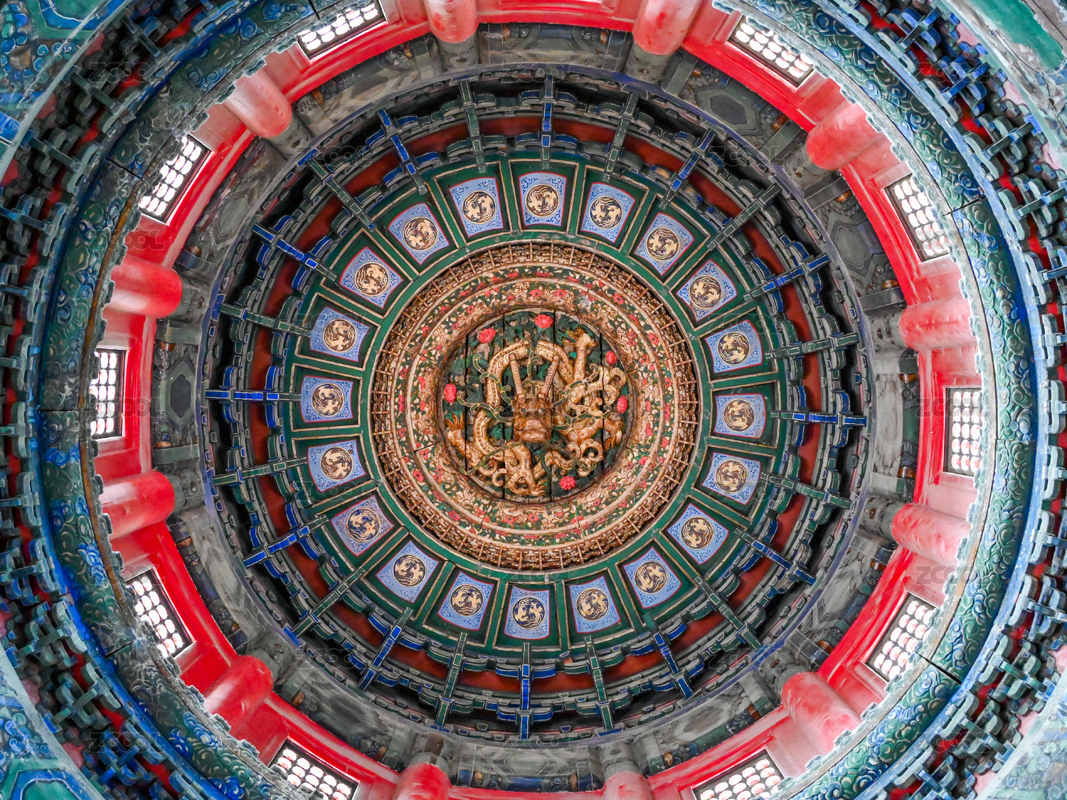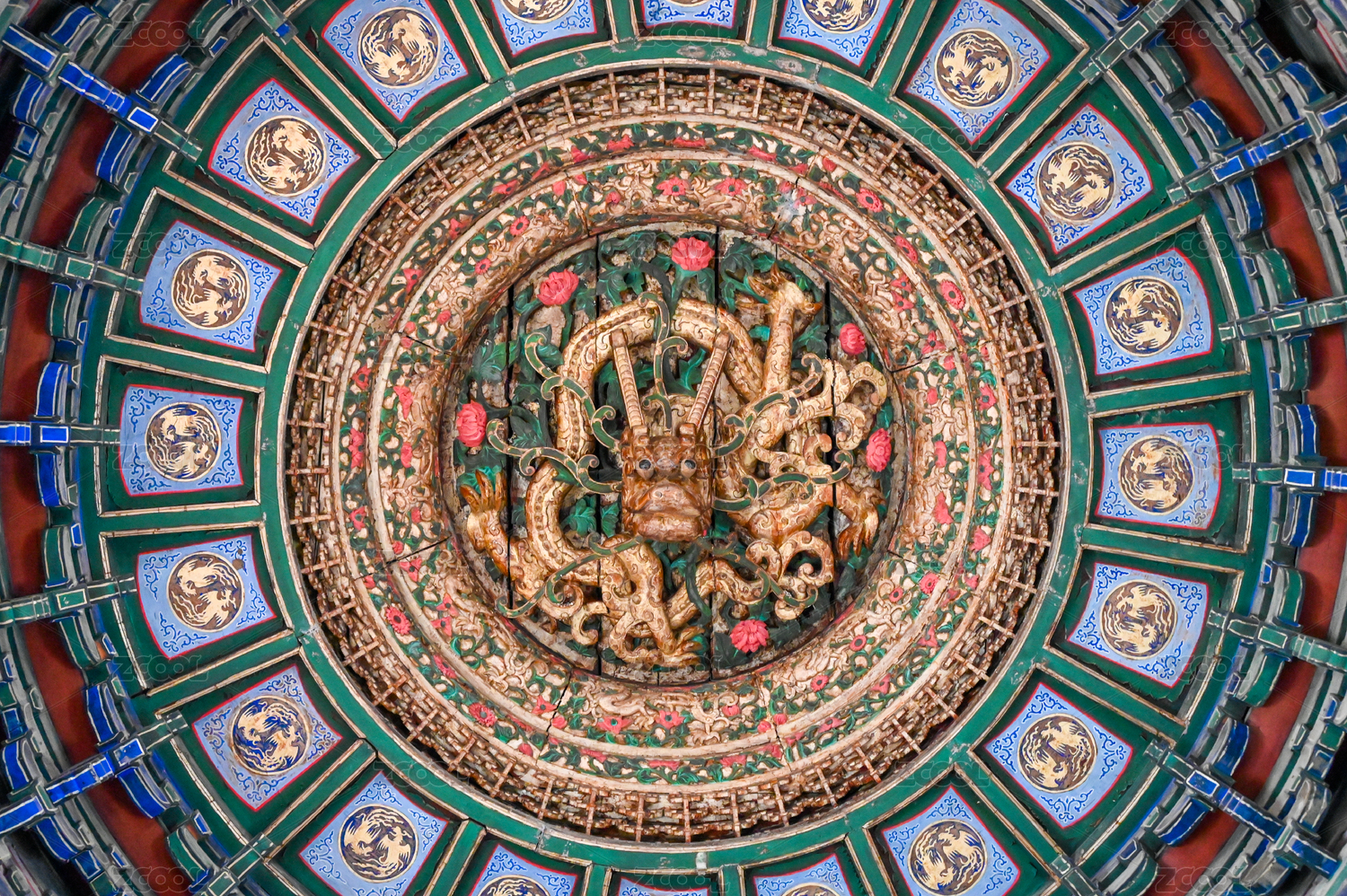 穹顶,天花,圆形,图案,园林,北京,建筑,文物,龙,亭