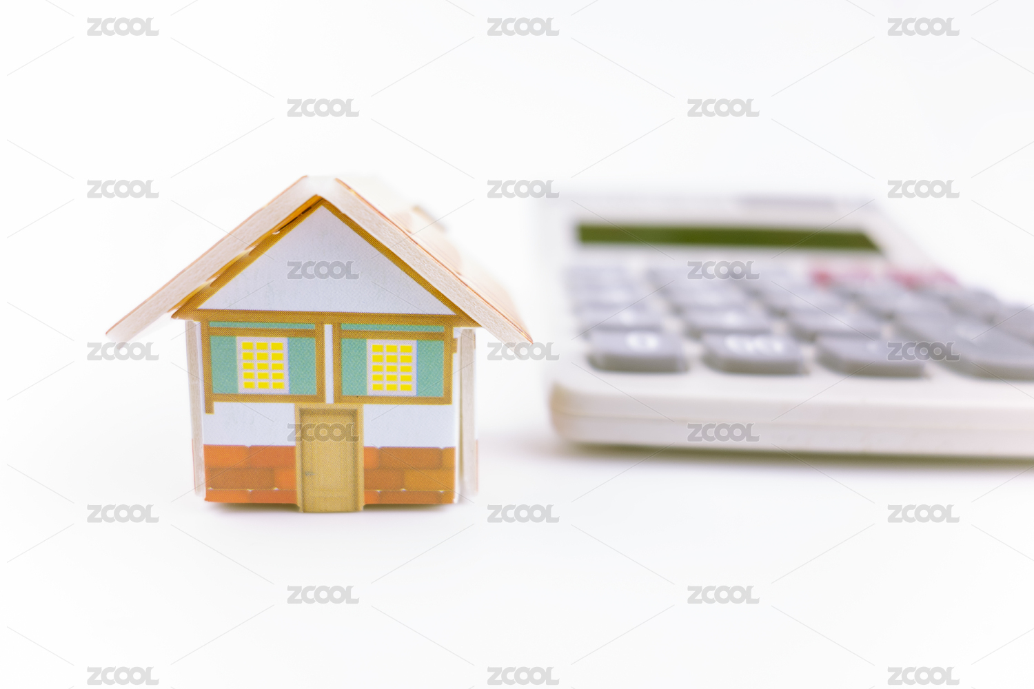 白色背景中的小房子和计算器