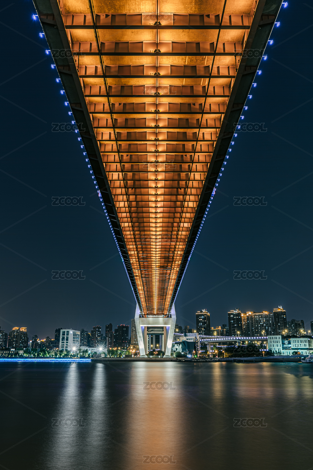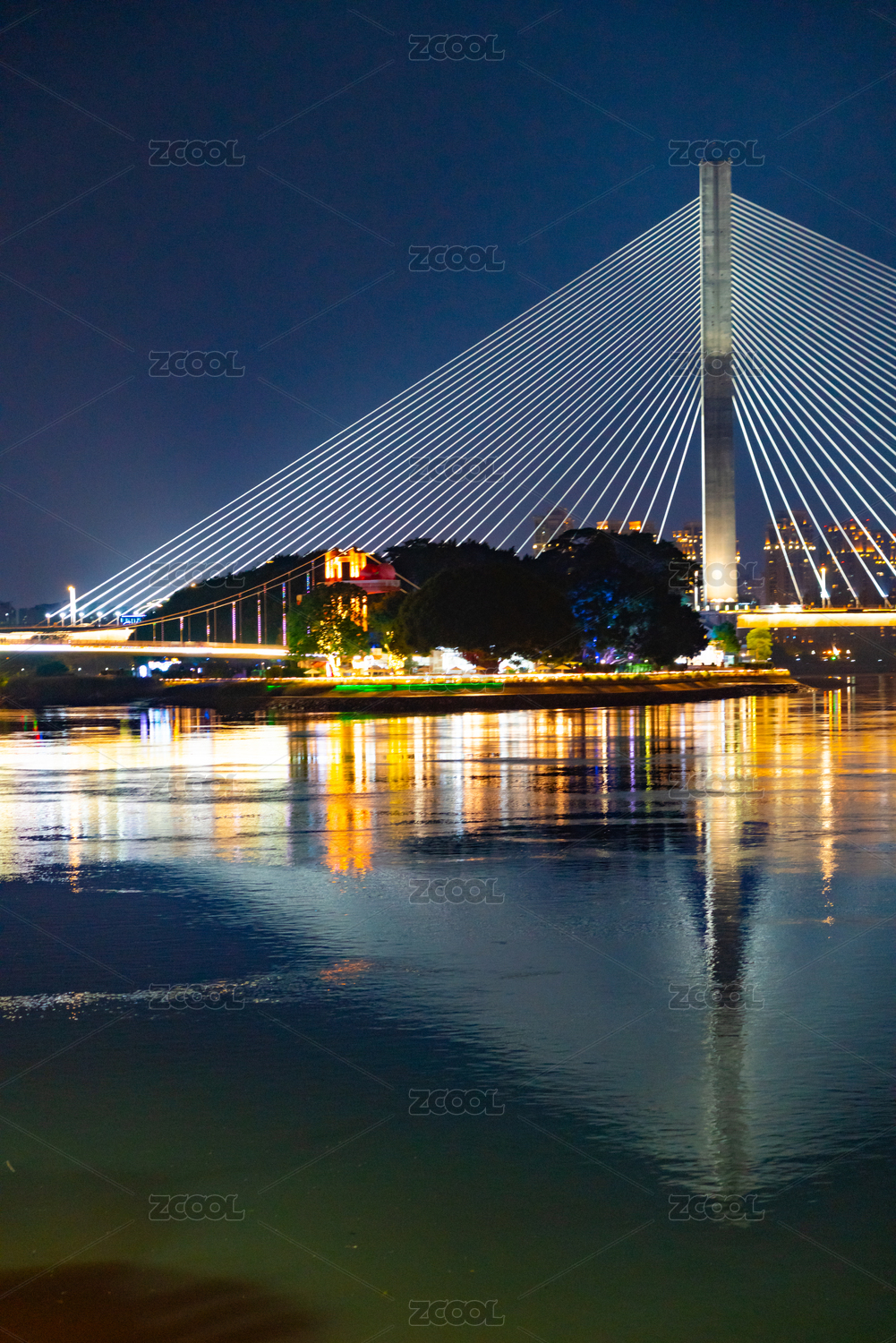 福建省福州市闽江三县洲大桥和爱情岛夜景