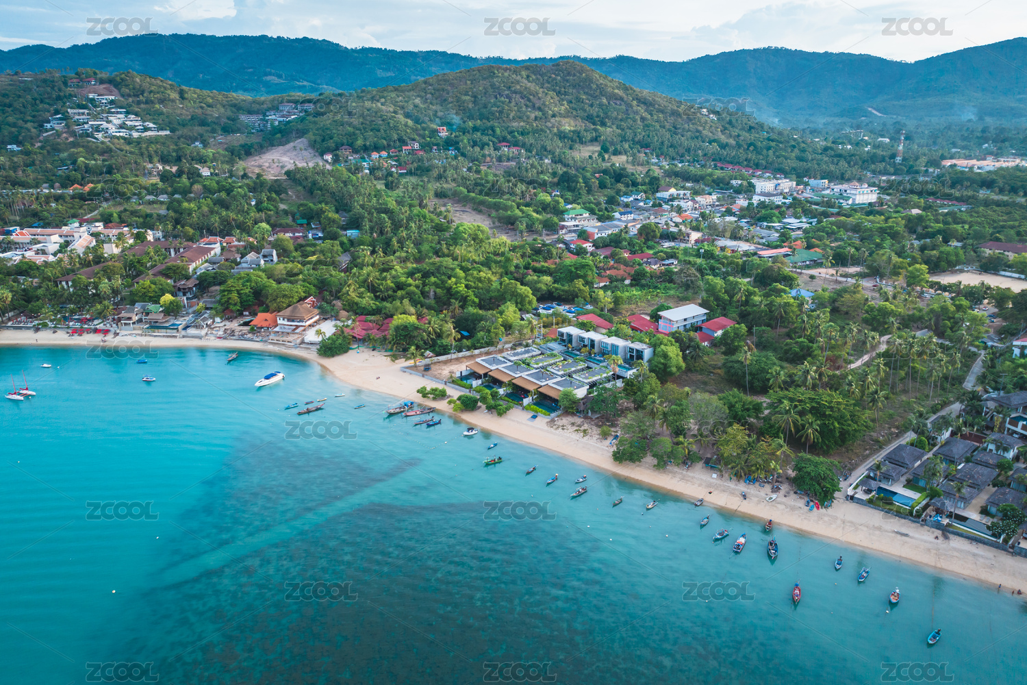 泰国苏梅岛波普海滩航拍热带岛屿海滨度假村