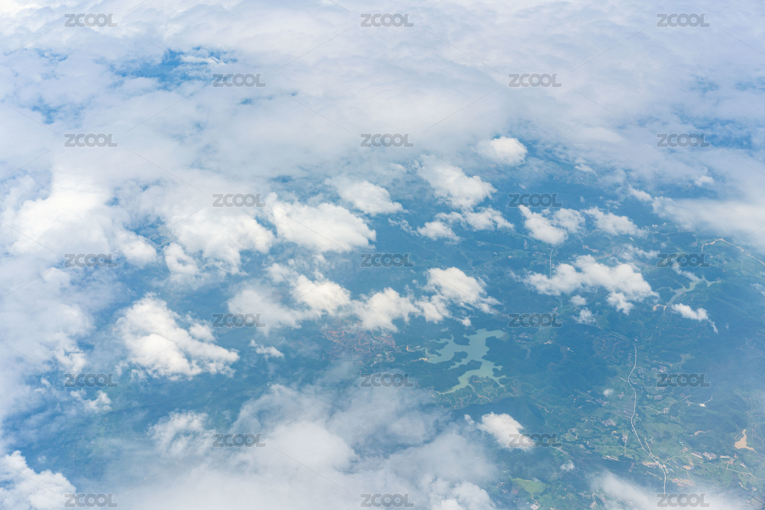 在高空中俯拍蓝天白云和地景