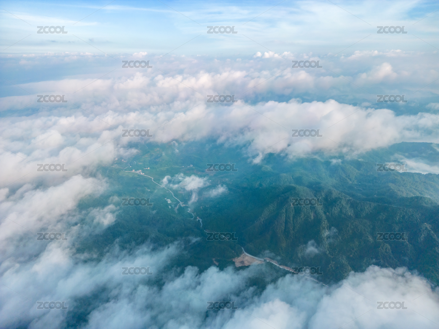 勾髻顶,云海,清晨,白云,航拍,永宁镇,云雾,山脉,西山,山麓