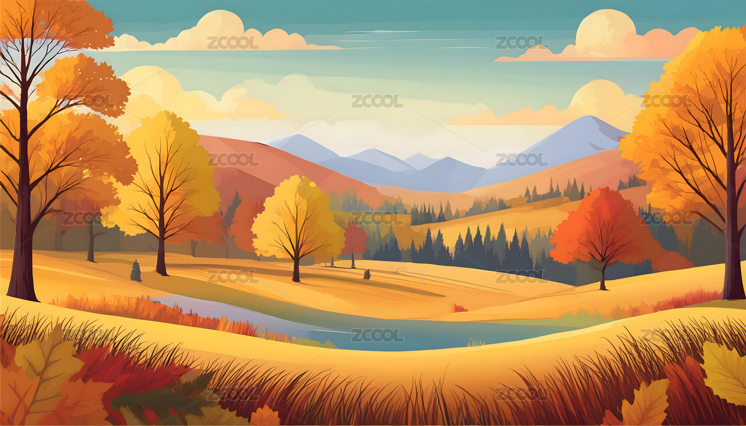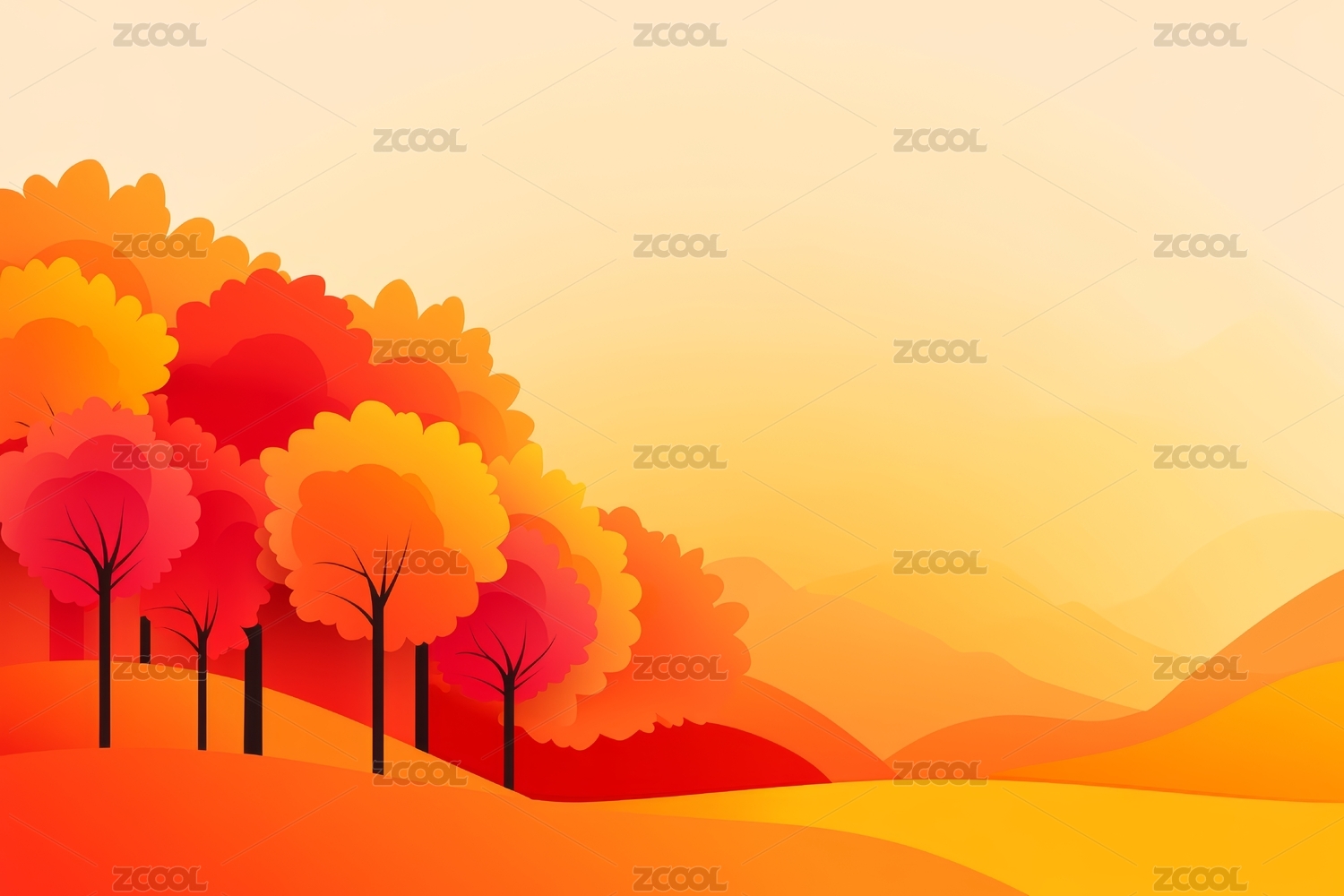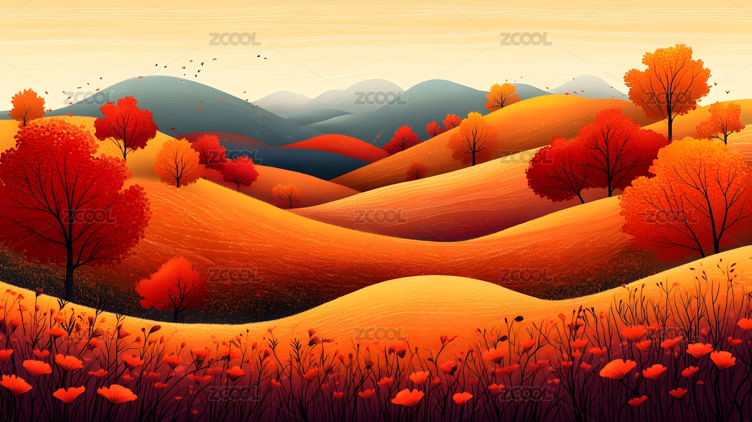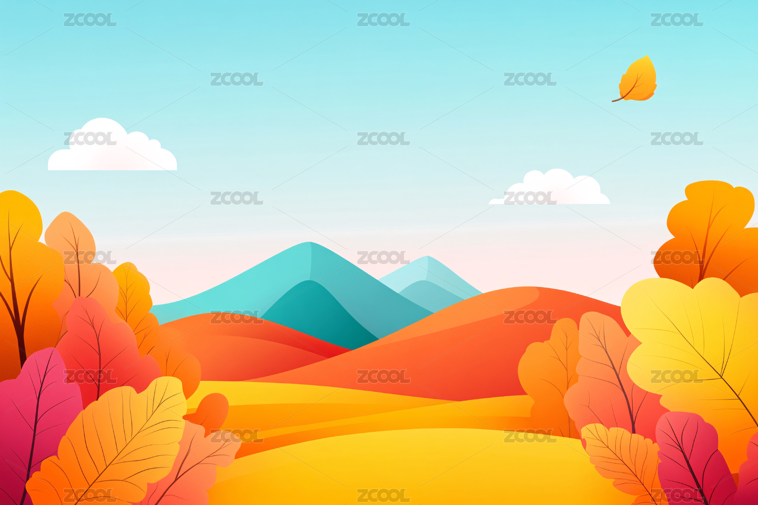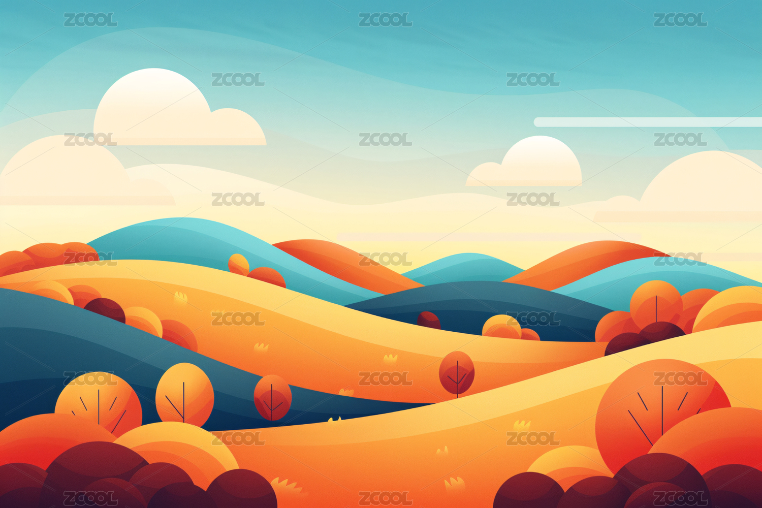 立秋节气户外旅行自然风景处暑卡通唯美插画