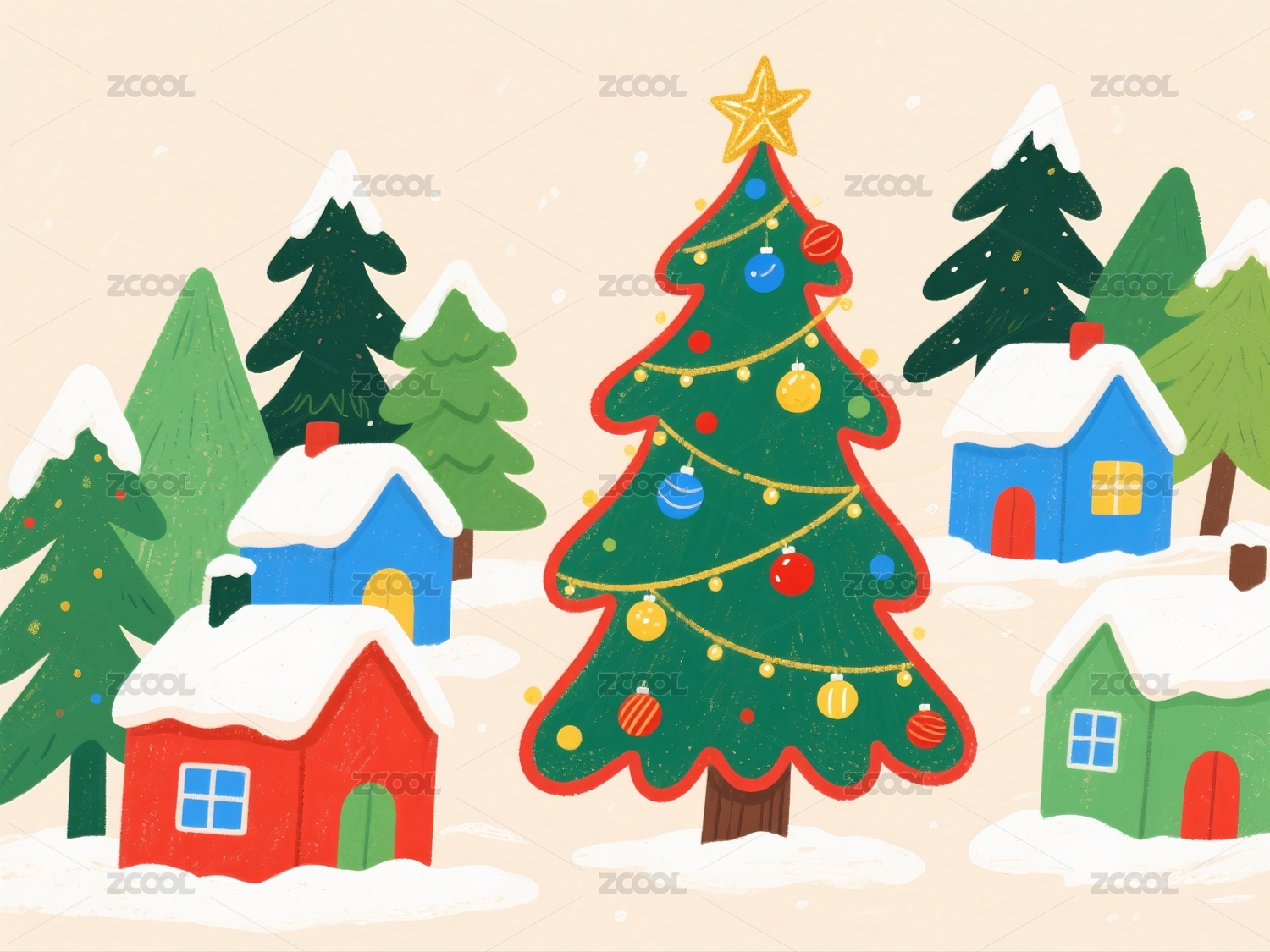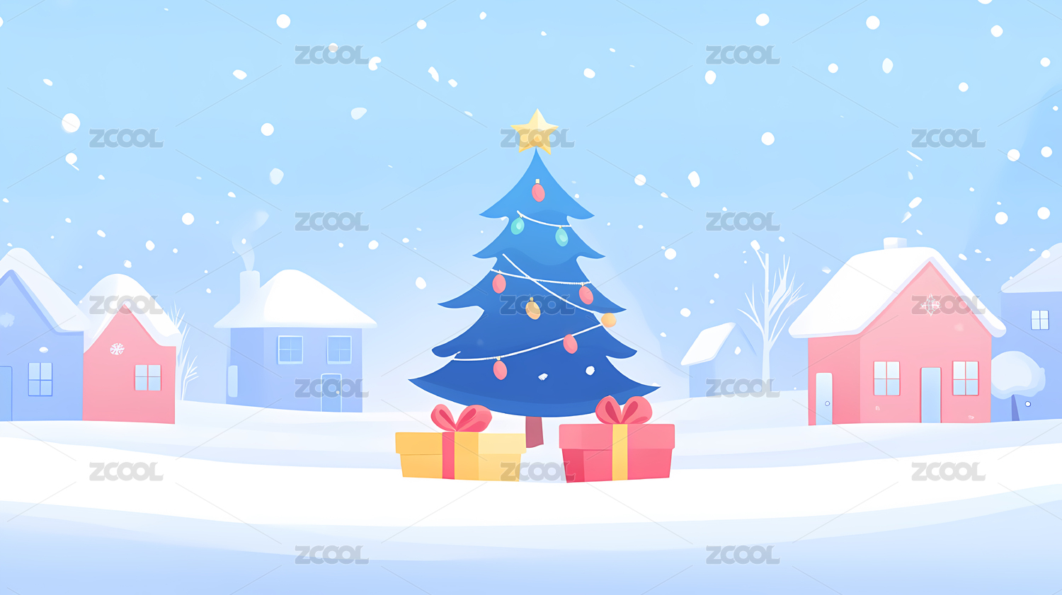 圣诞节雪地小镇装饰圣诞树房屋