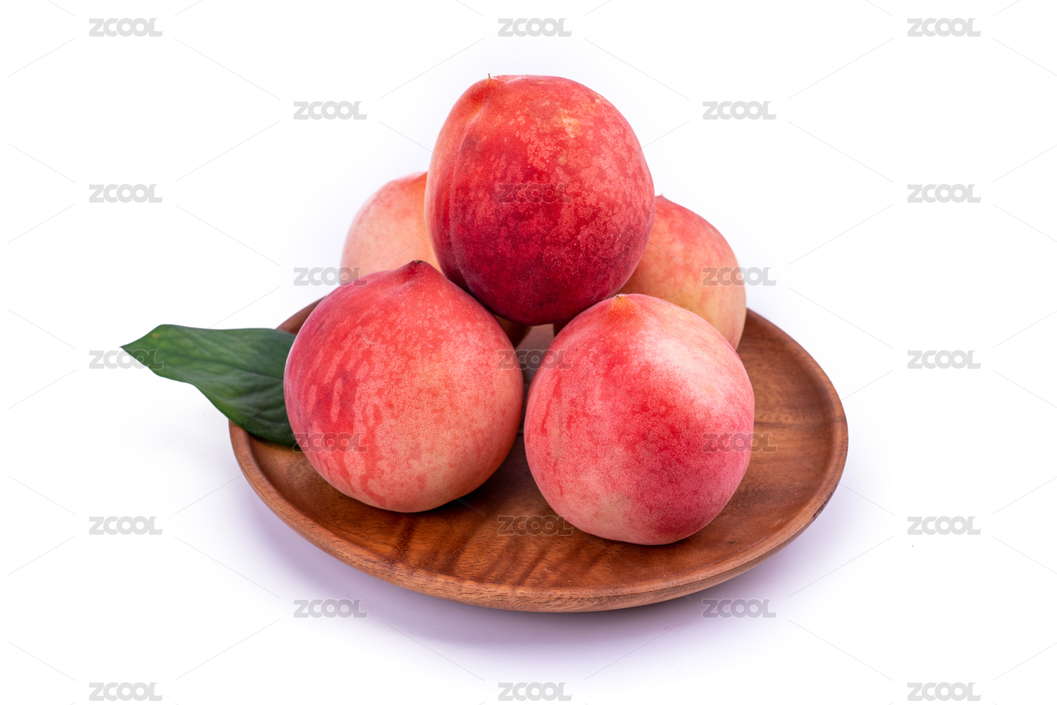 木盘子上的新鲜桃子
