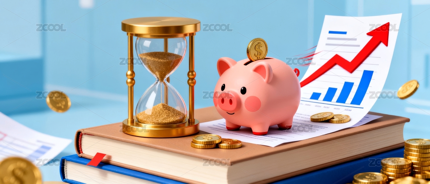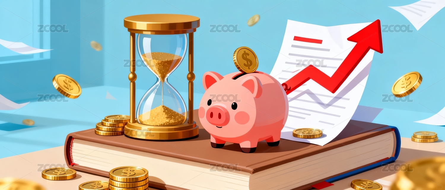 互联网金融理财插画商务人物储蓄罐存钱海报