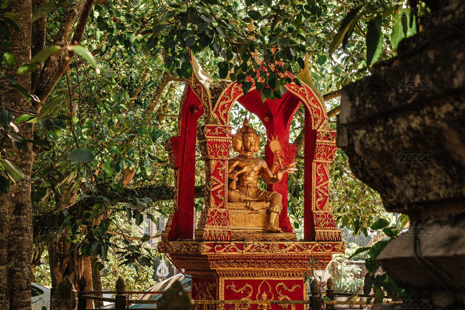 泰国寺庙供奉三面佛和观音像的神龛神台