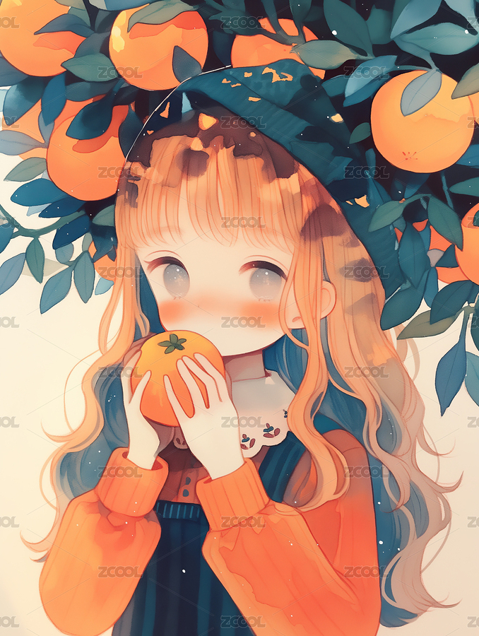 怀抱橘子的女孩
