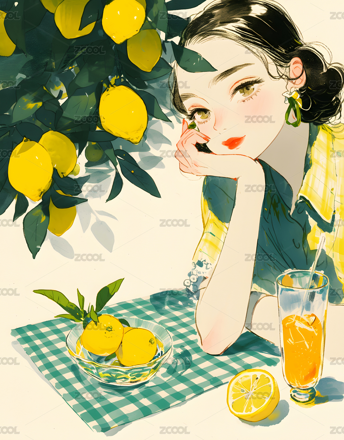 柠檬树下的少女壁纸