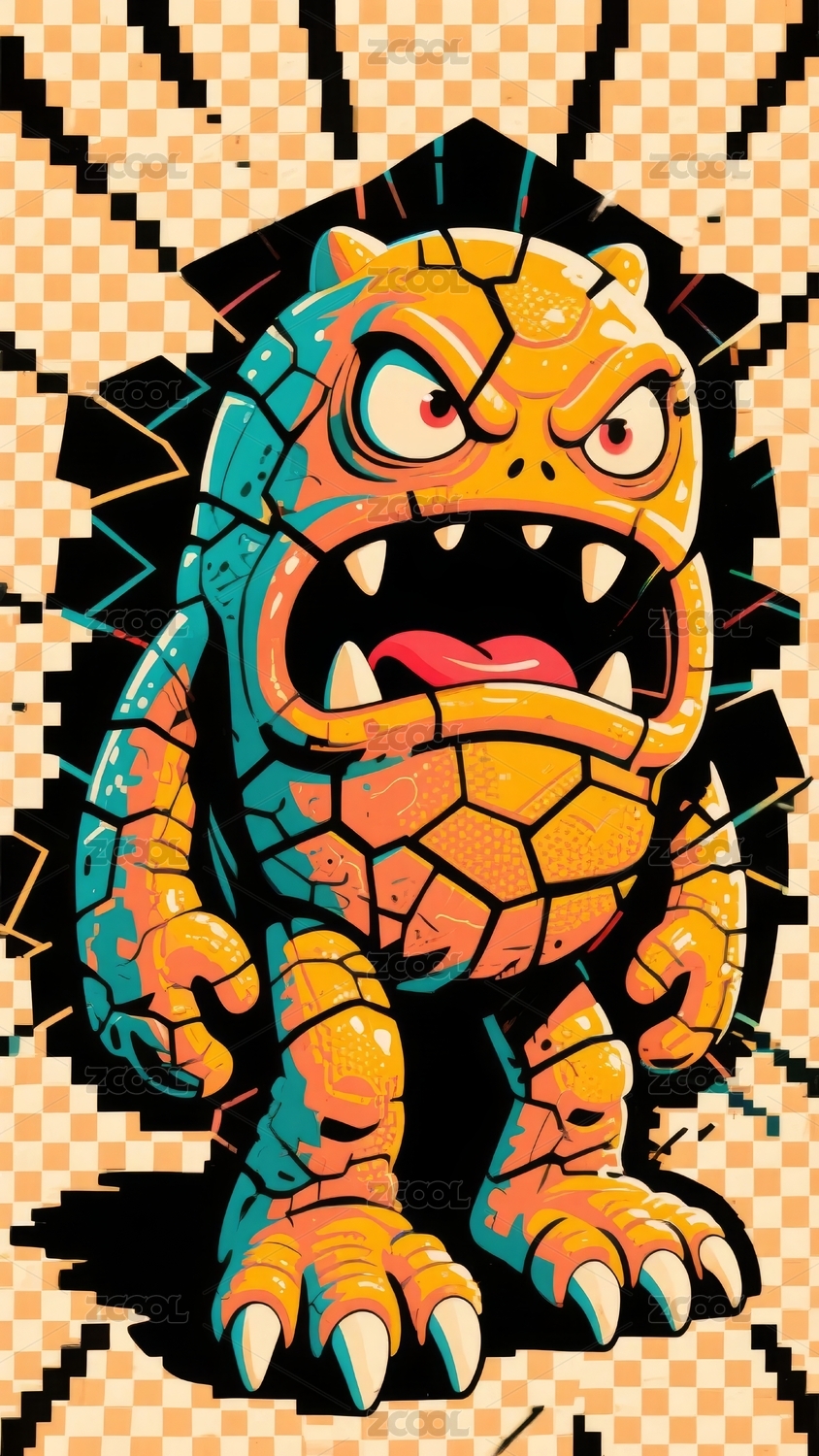 像素风格破碎怪物张嘴咆哮的艺术插画