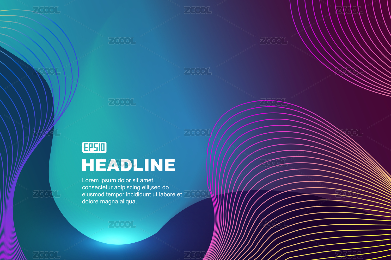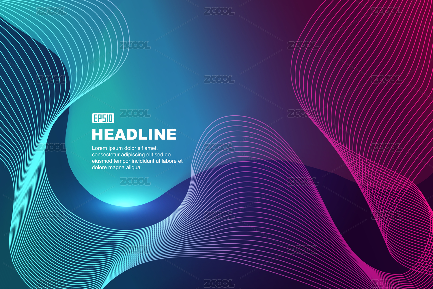 炫彩渐变发光波浪线抽象背景