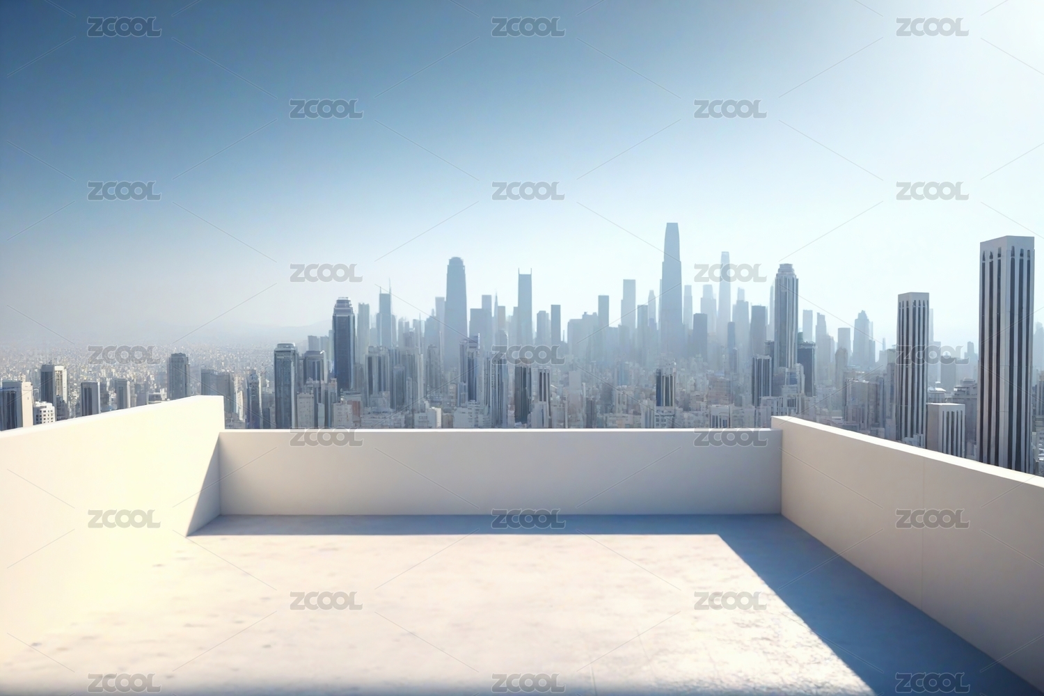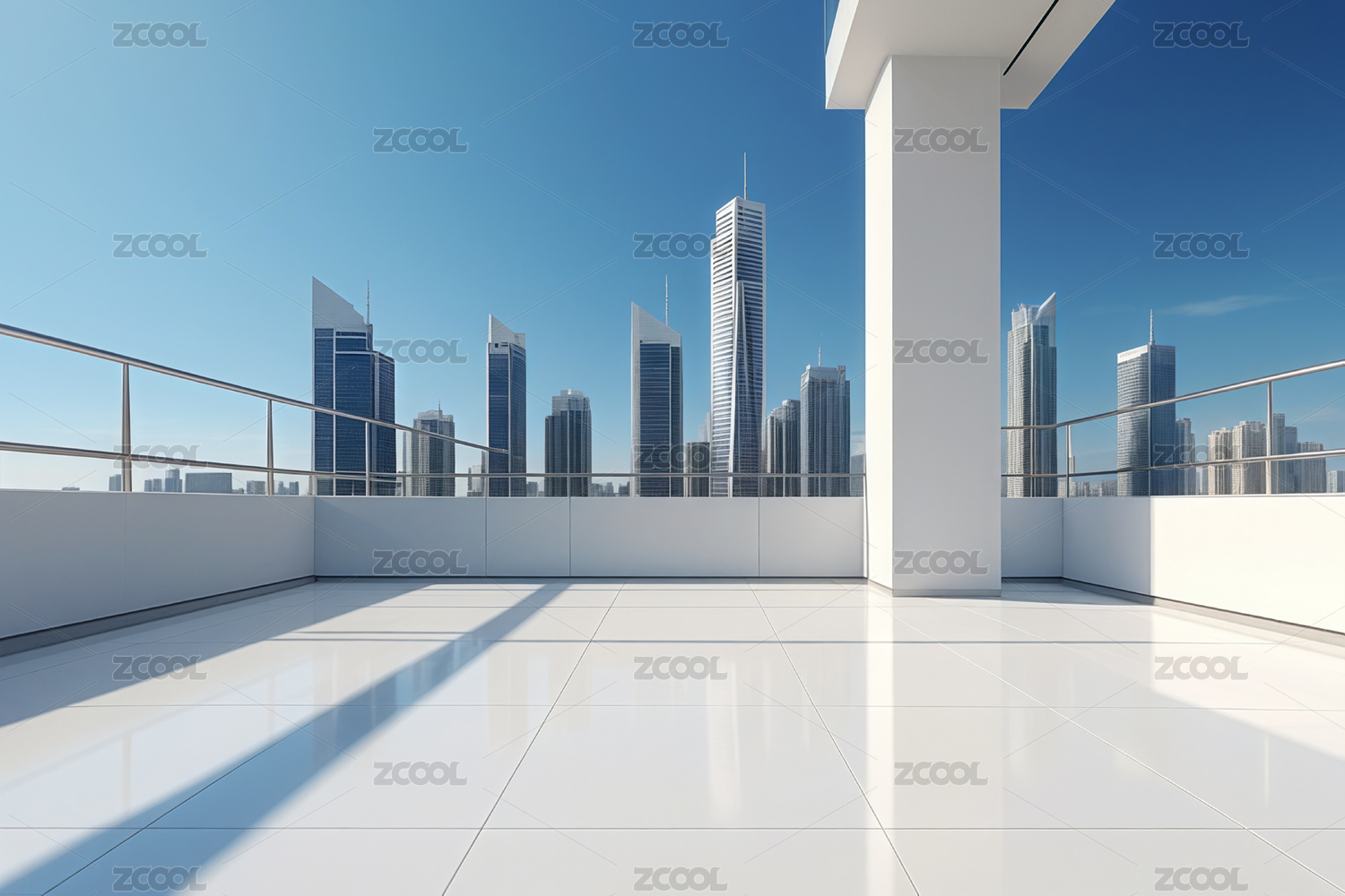 从白色天台看现代城市天际线景观