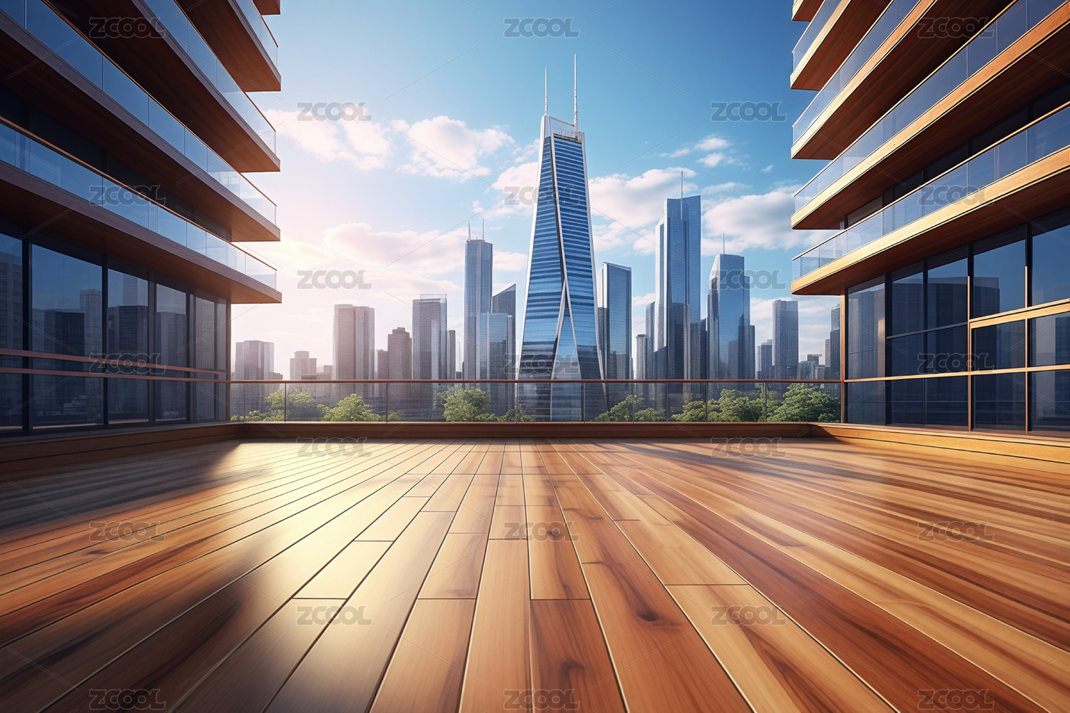 城市景观阳台木地板空旷空间