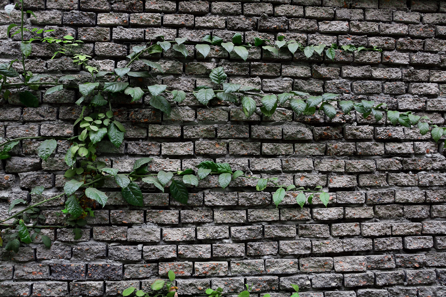 老房子青砖墙面上的绿色爬藤