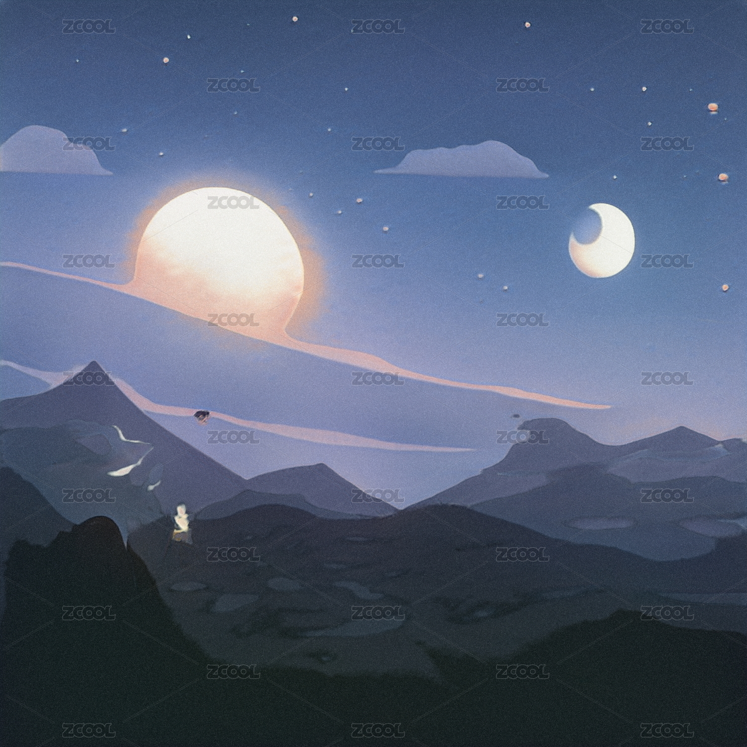 插画,风光,自然,天空,山脉,河流,河,大海,海洋,山丘