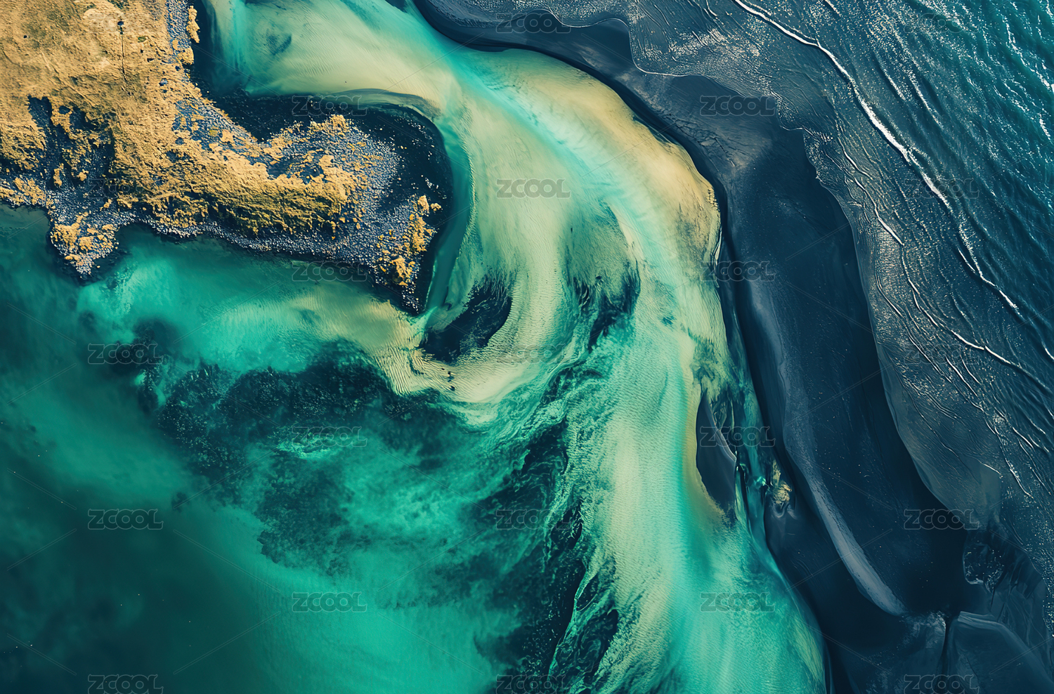 鸟瞰绿松石般的海水冲向沙滩