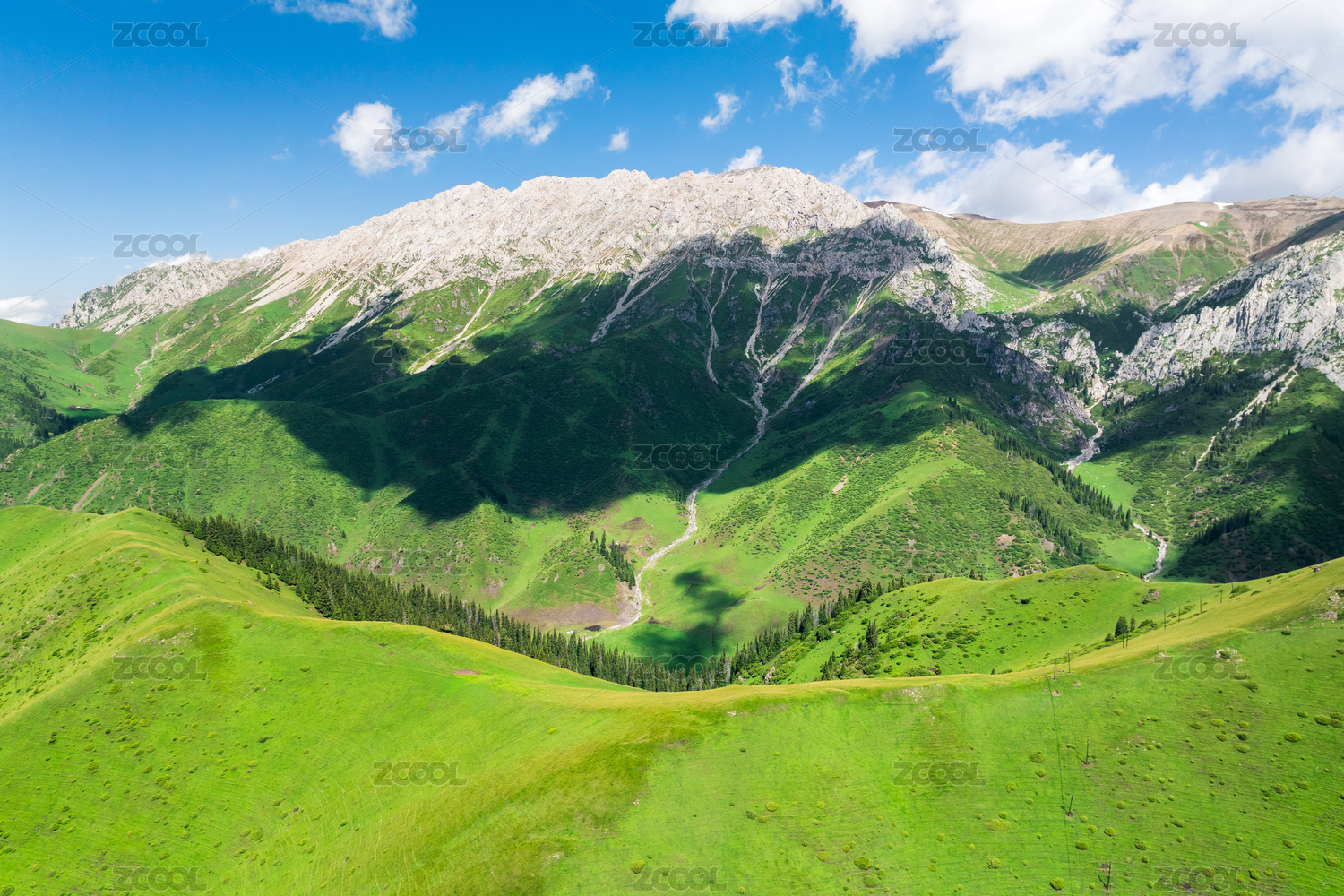 中国新疆伊犁夏季雪山森林草原景观