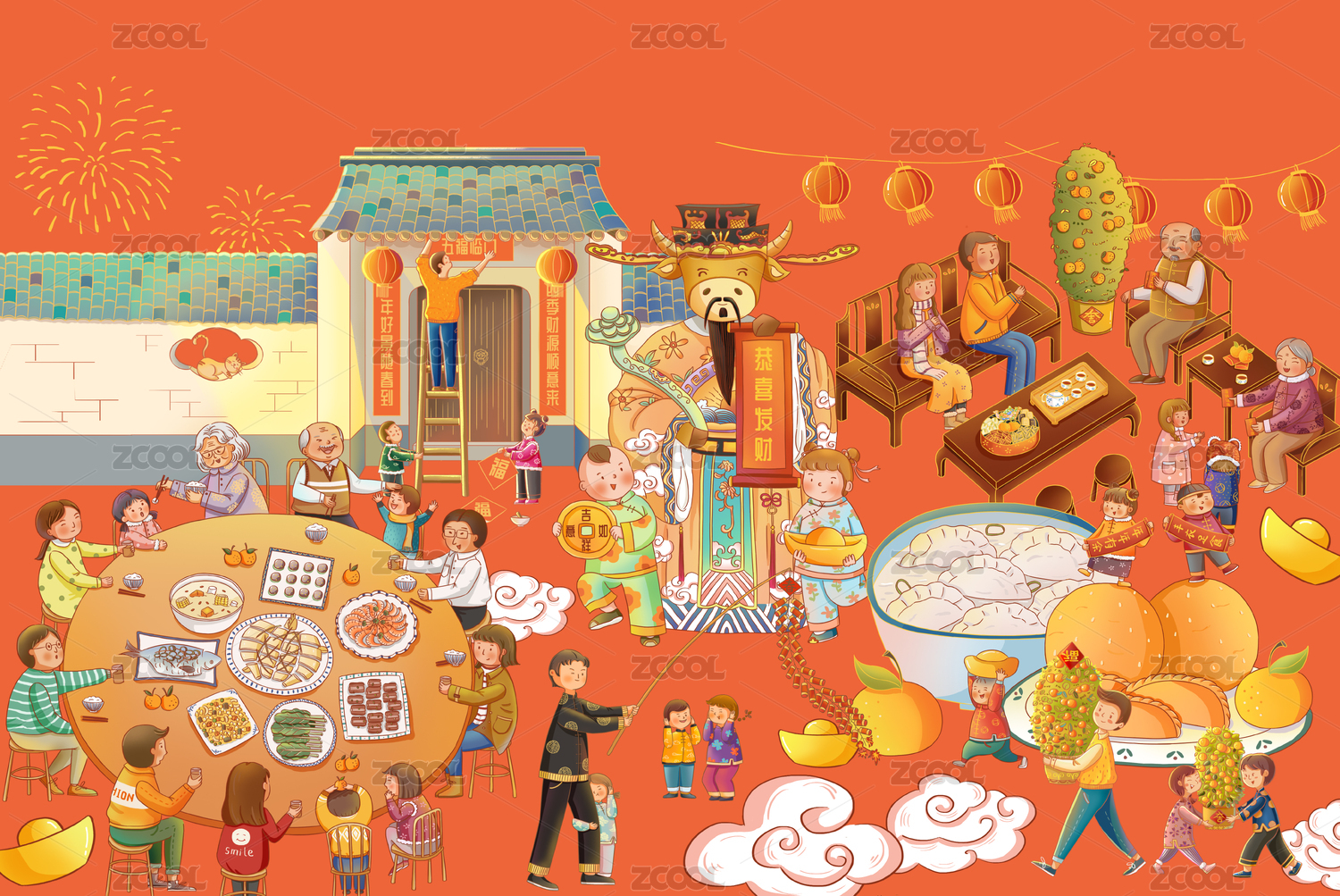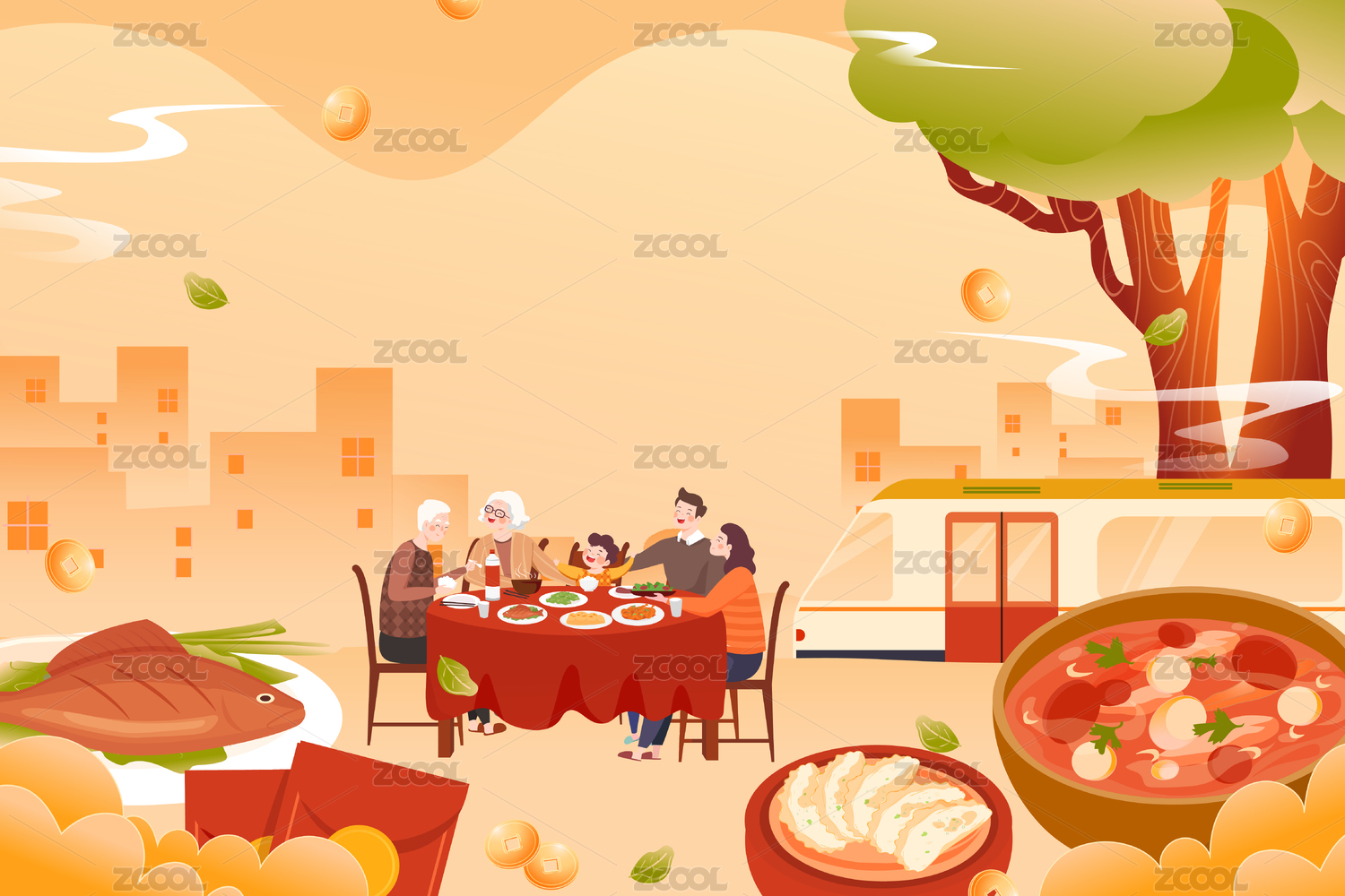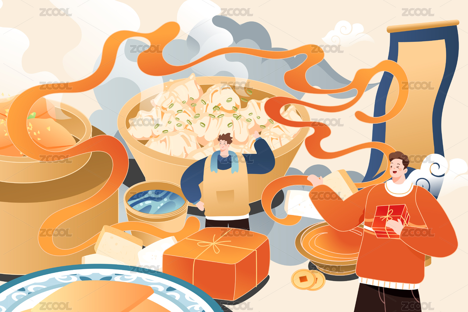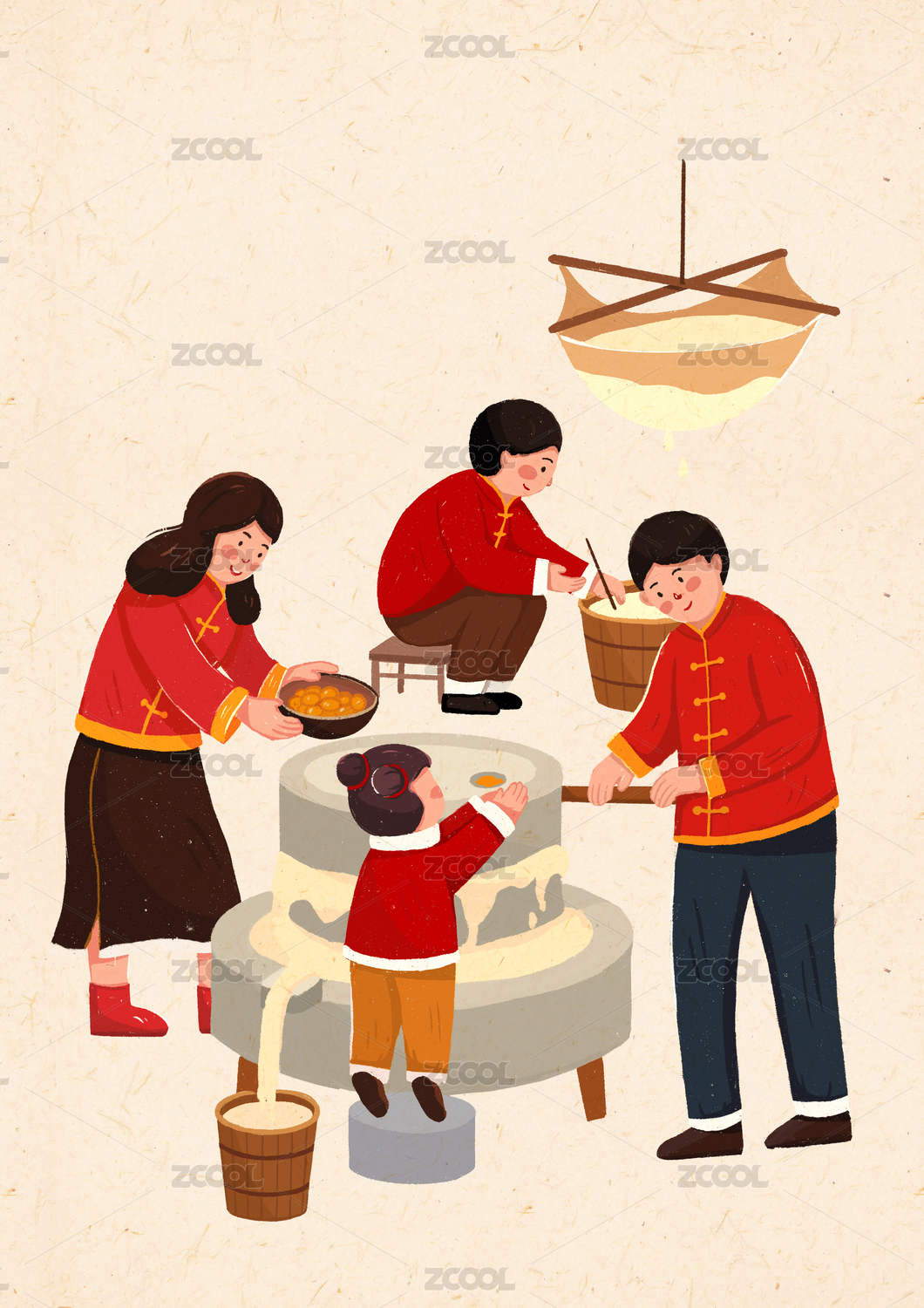 红色新国风国潮冬至插画建筑元素菱形窗圆