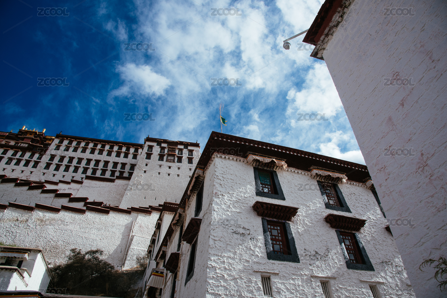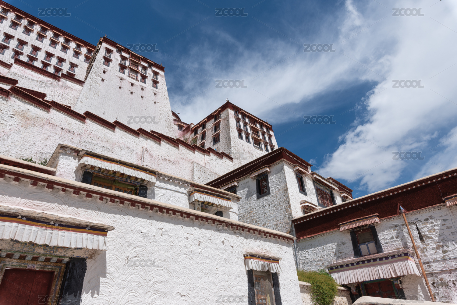 中国蓝天白云下的布达拉宫宫殿阶梯与建筑