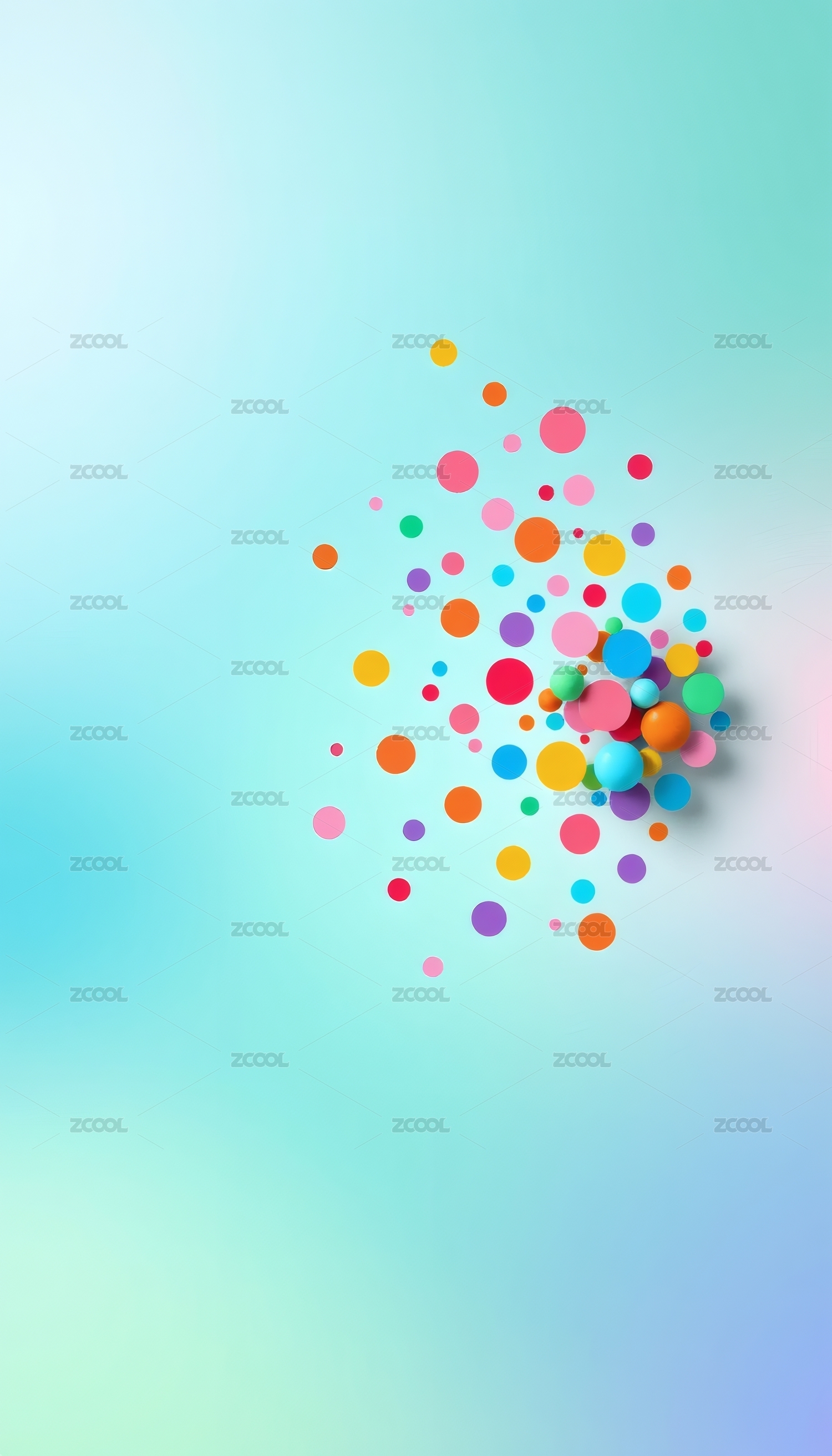 渐变背景上飞散的多彩圆点