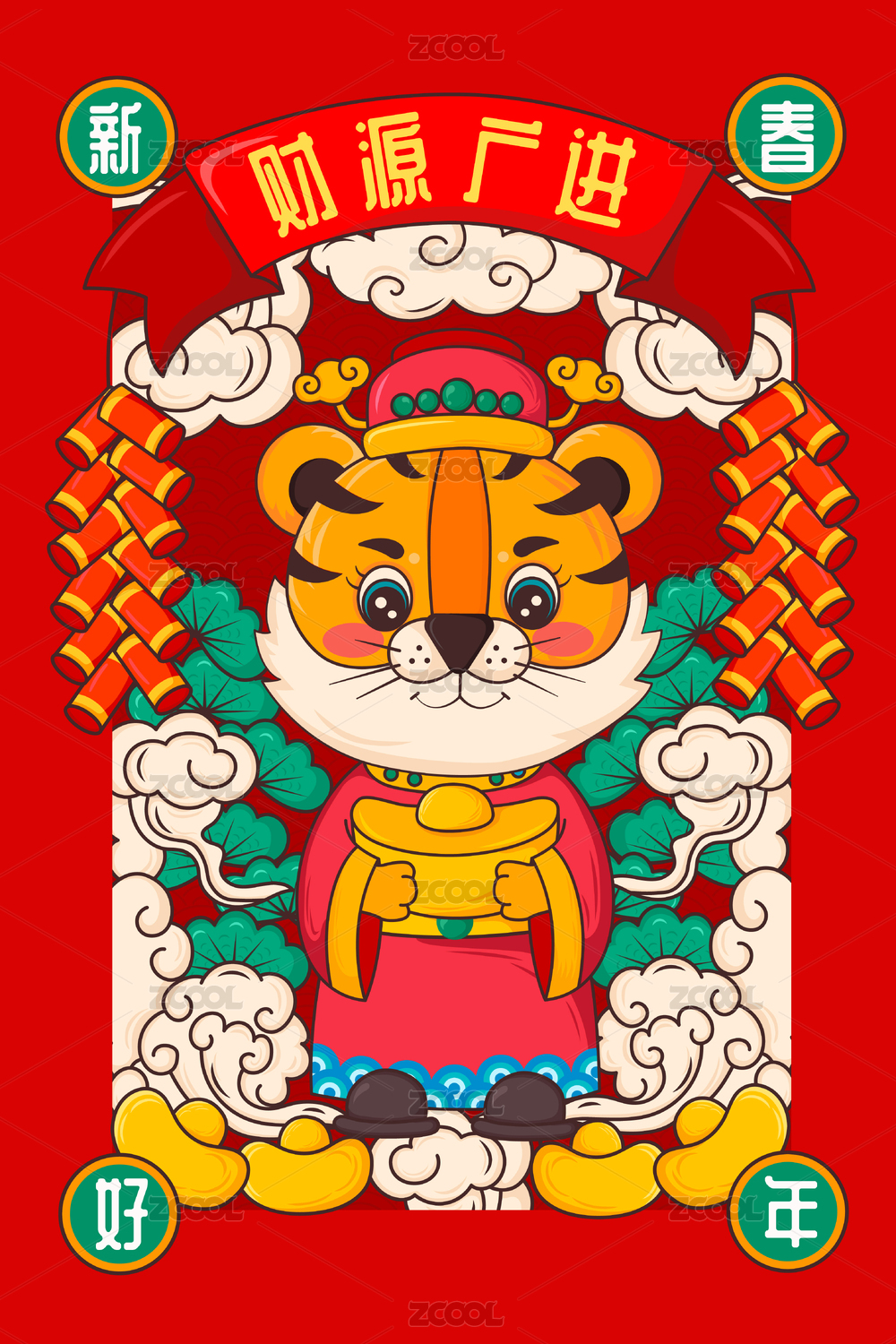虎年财源广进矢量插画