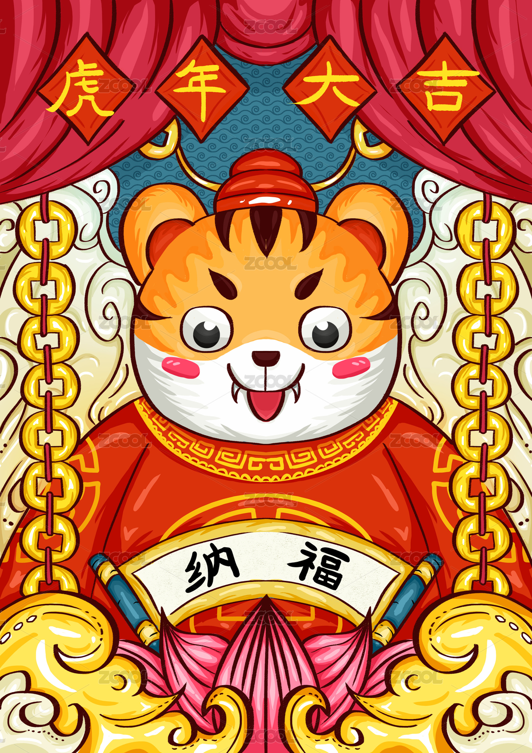 虎年大吉国潮矢量插画