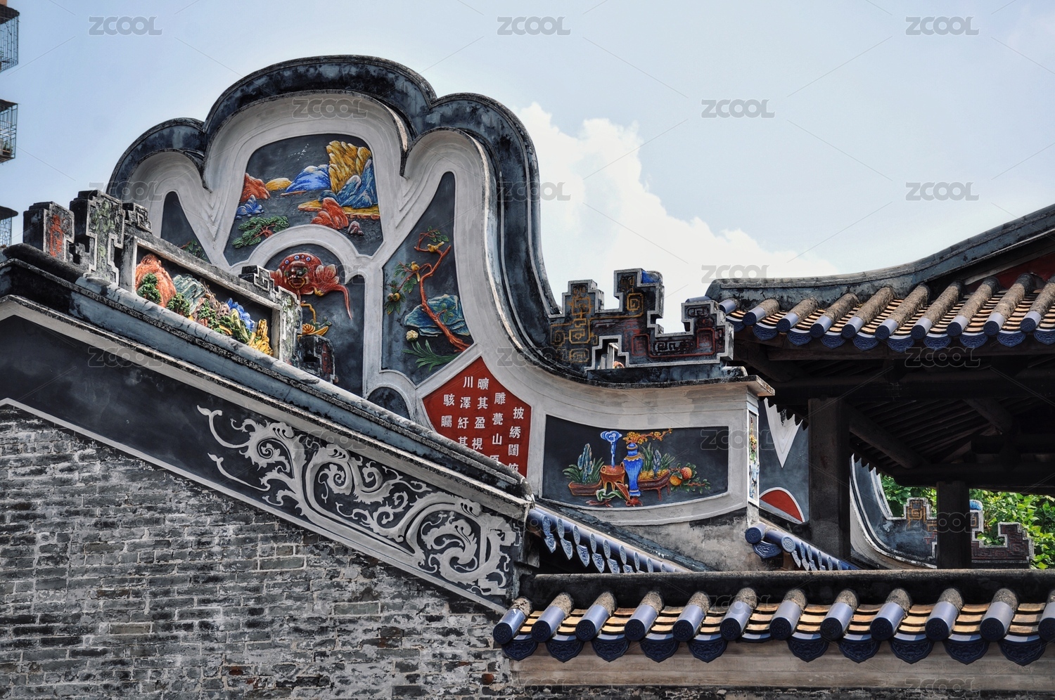 广州番禺沙湾古镇中式传统岭南古建筑屋檐
