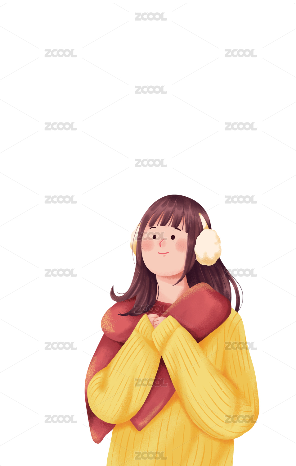 一人,下雪,冬天,冬季,半身,卡通,可爱,女,女孩,寒冷