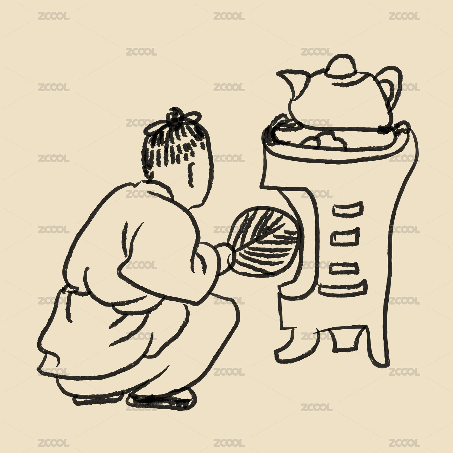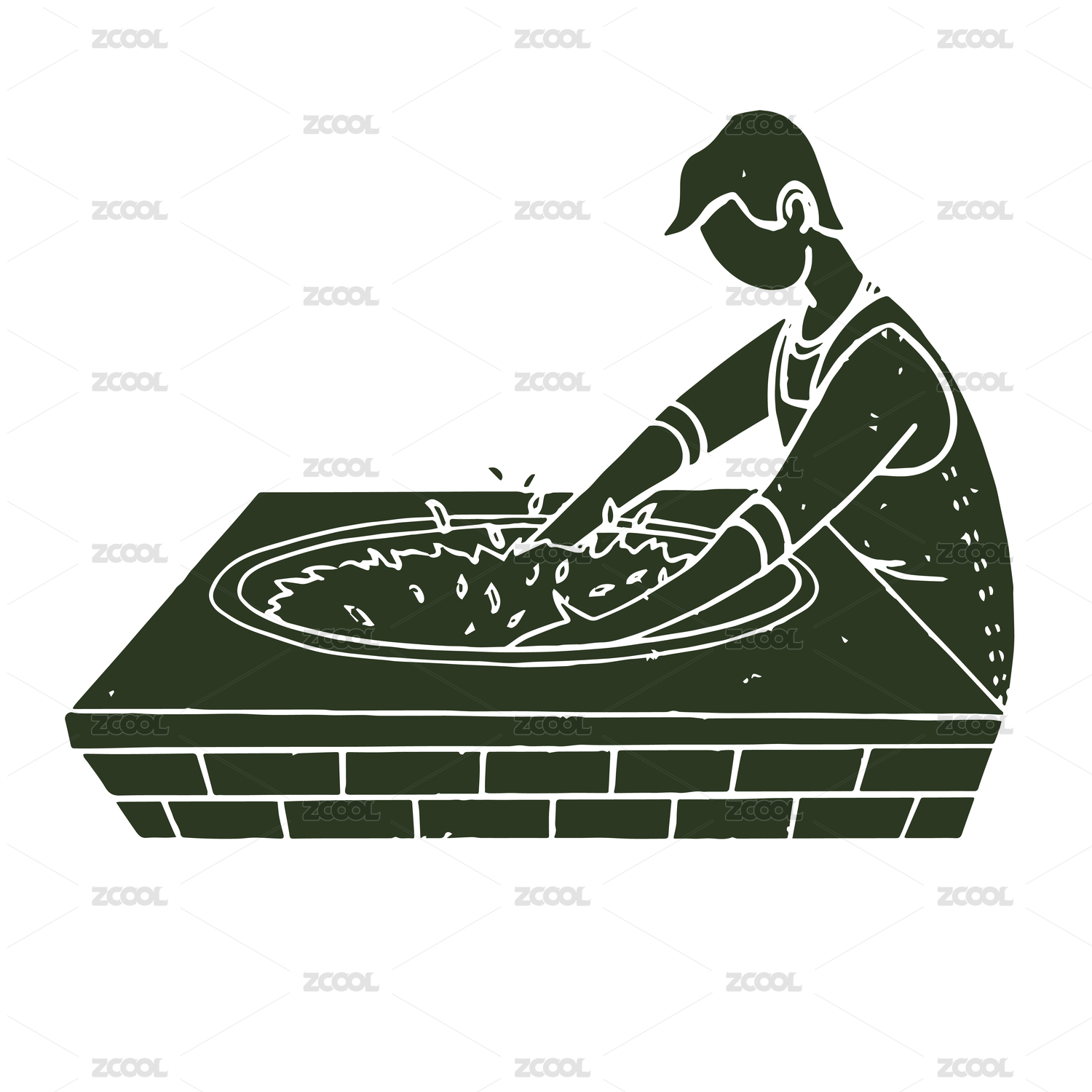揉面,和面,古人,做面食,美食,插画,插图,面粉,白面,传统