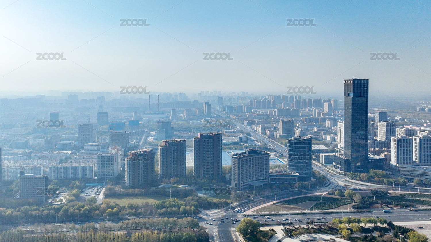 航拍郑州郑东新区龙子湖湖心岛高楼大厦建筑