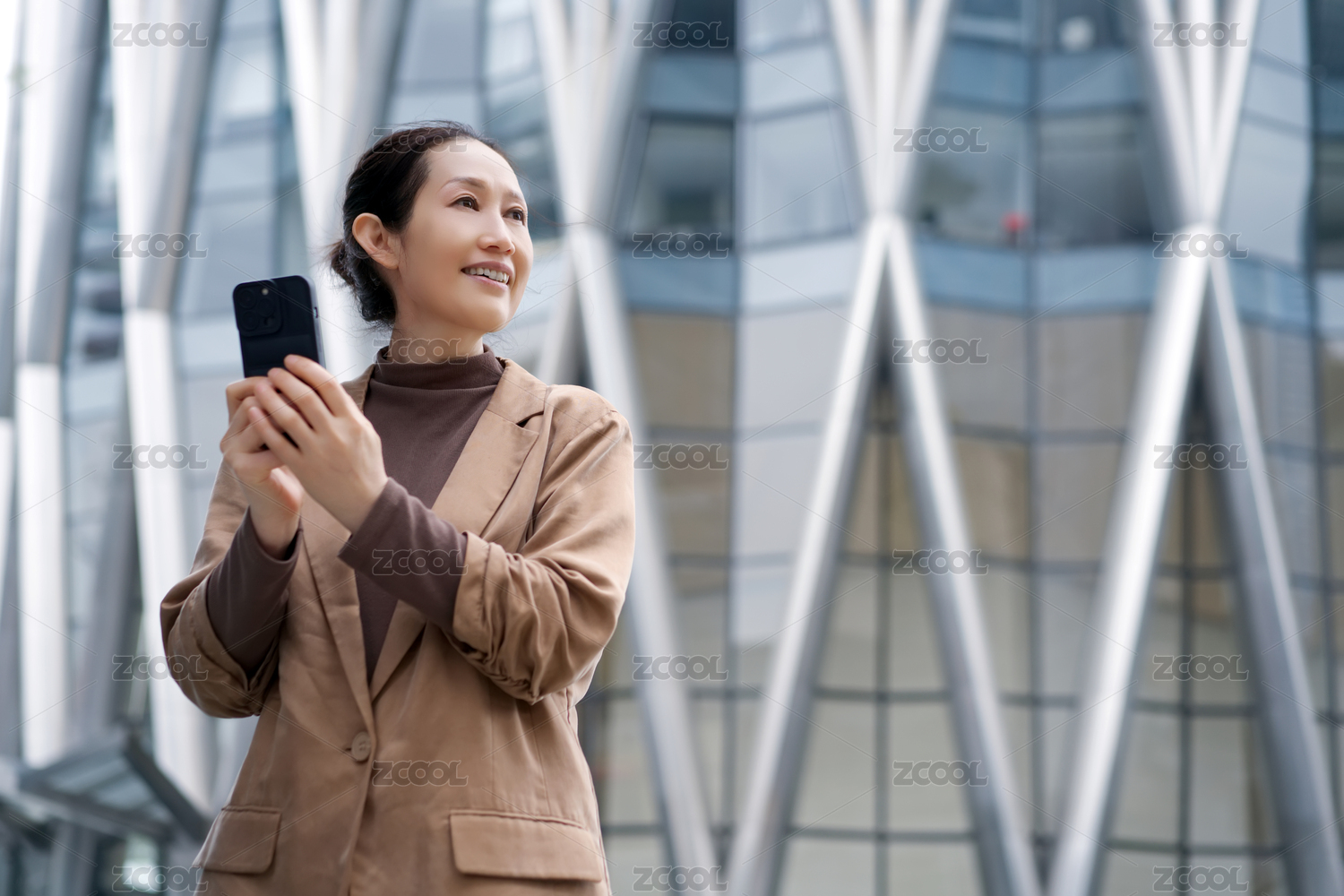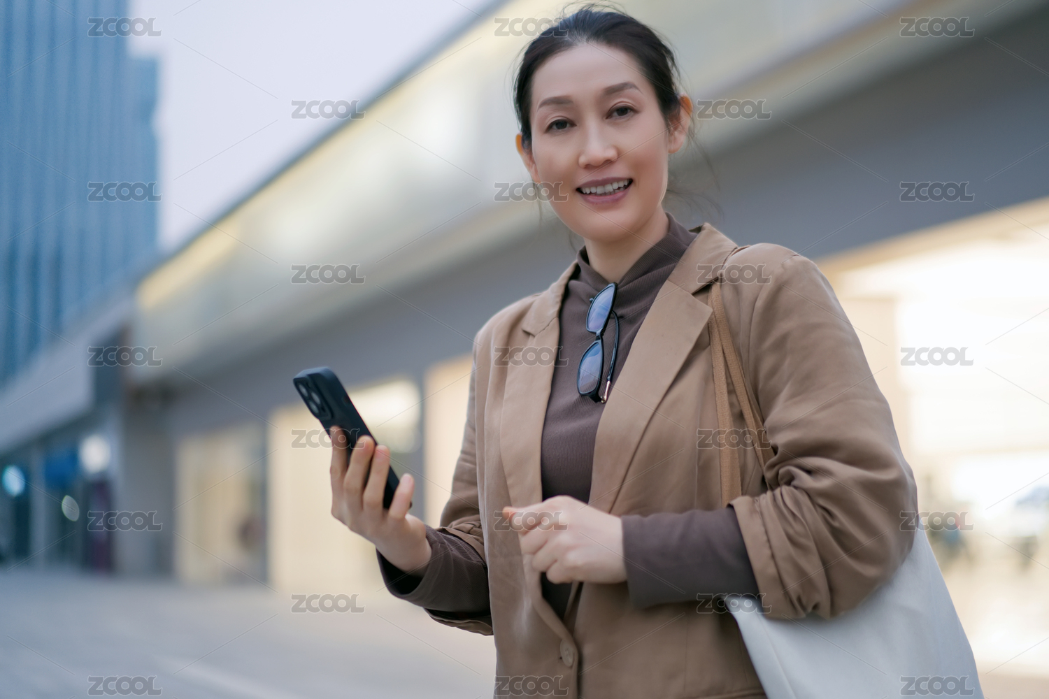 职业女性在城市环境中使用智能手机