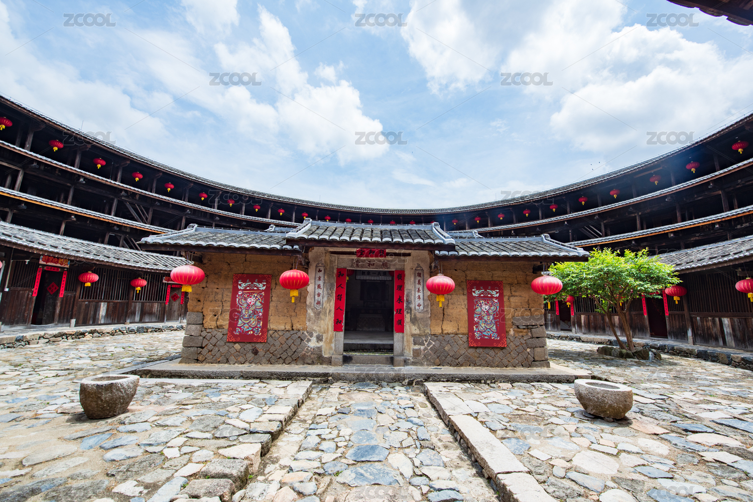 福建省龙岩市初溪土楼内部景观