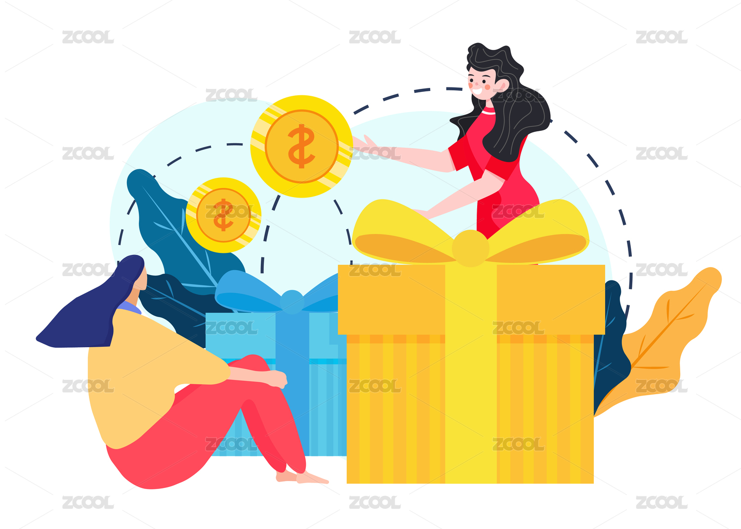 banner邀请好友有礼获得红包以及获得返现,商业矢量扁平概念插画