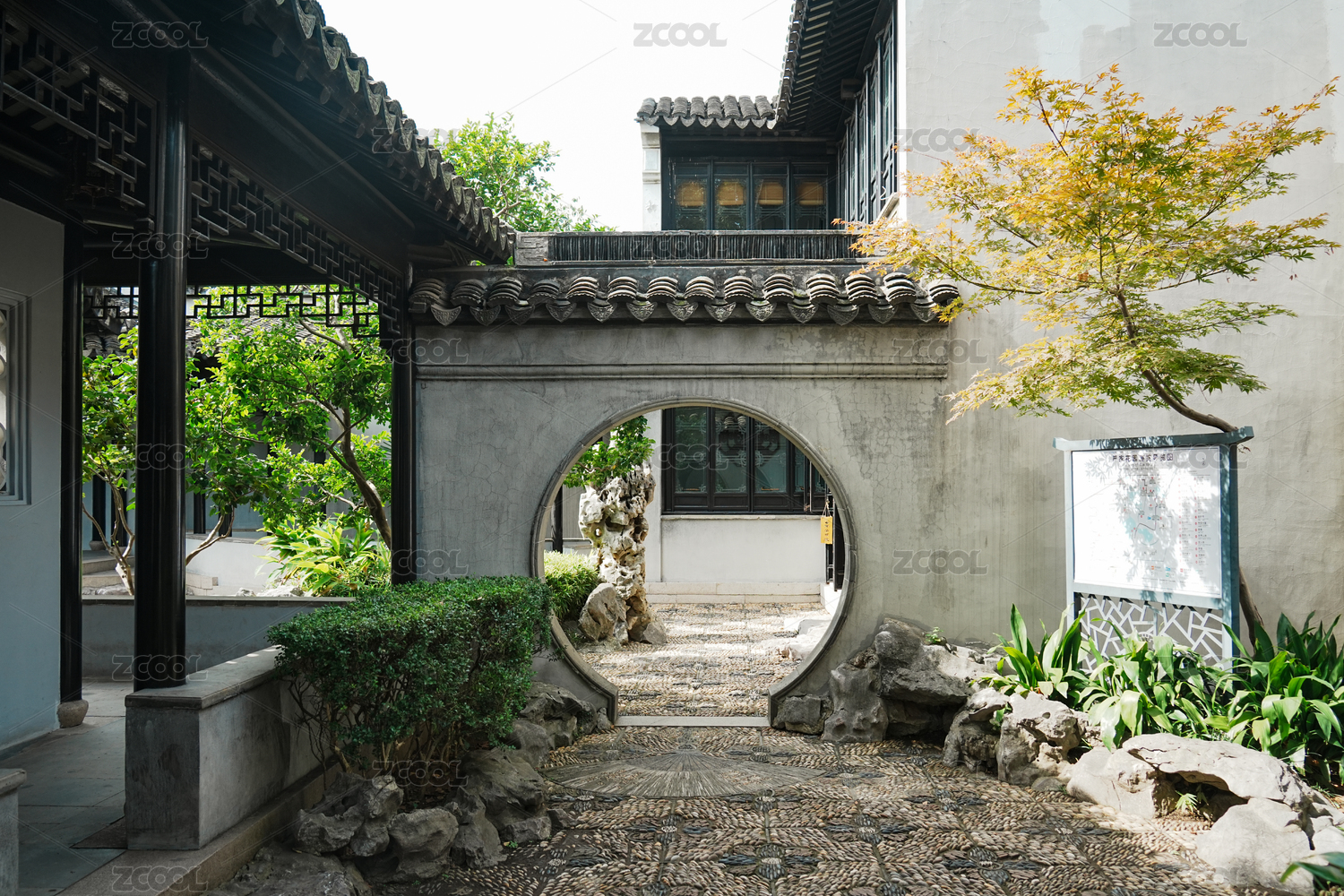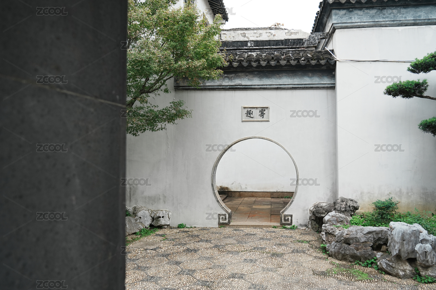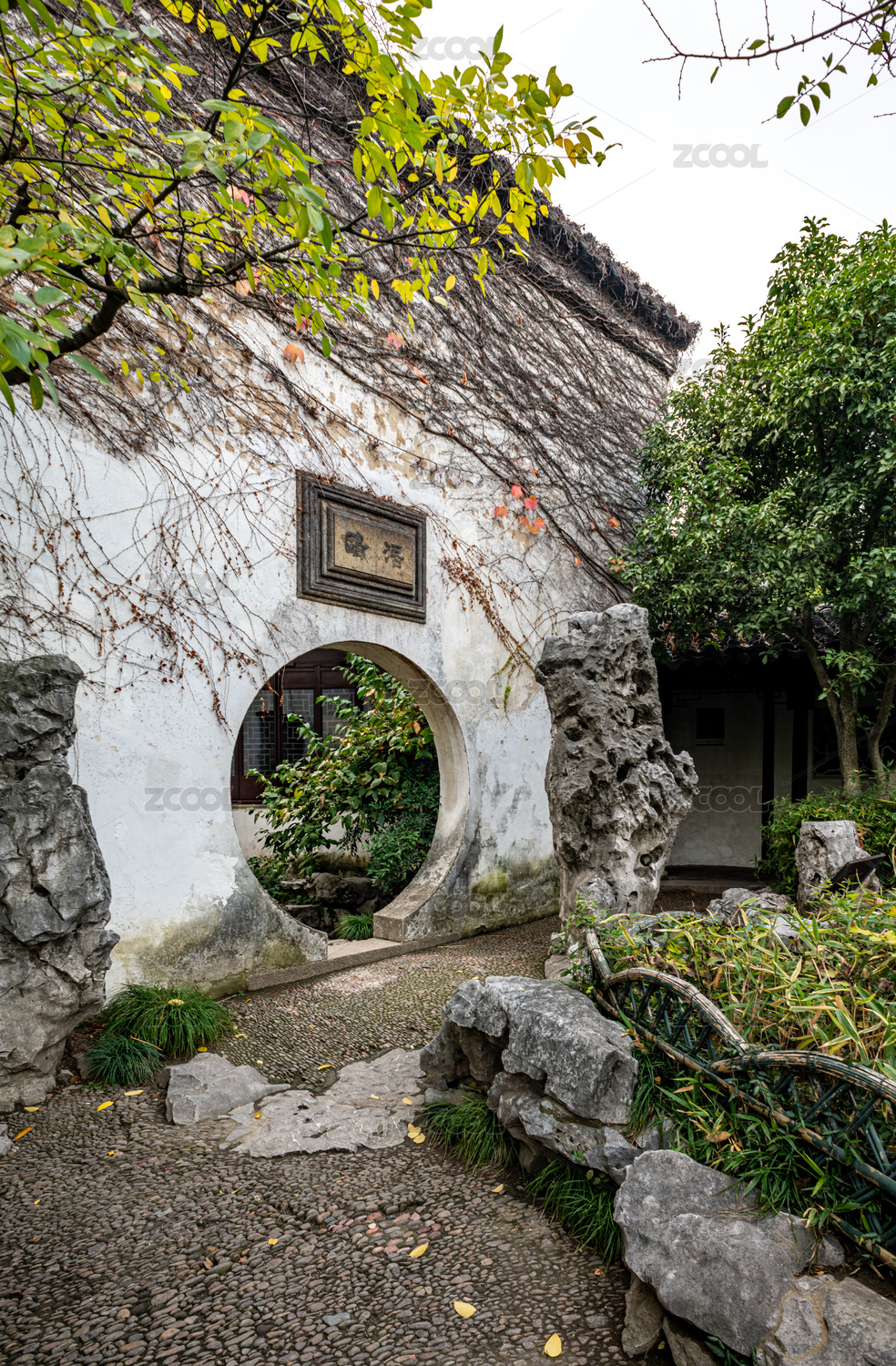 古典园林的围墙月亮门